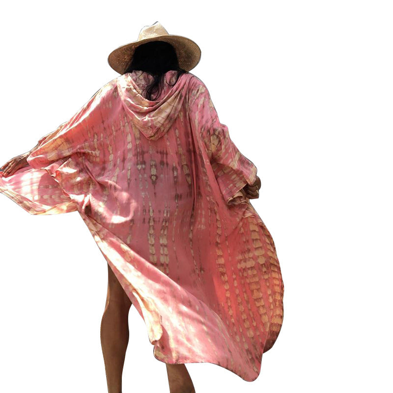 Cardigan de protection solaire à capuche imprimé à manches longues pour la plage, les vacances, le maillot de bain, les vêtements d'extérieur