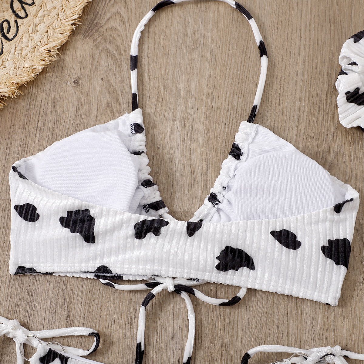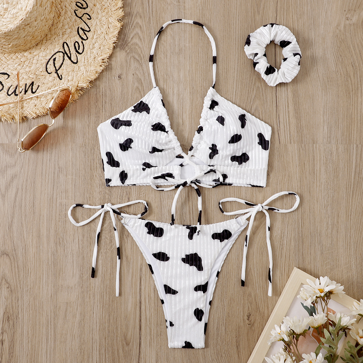 Maillot de bain triangle à lacets pour femme, imprimé vache, sexy, croisé, découpe, bikini