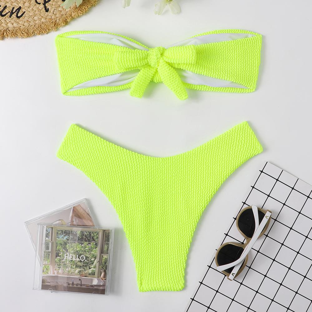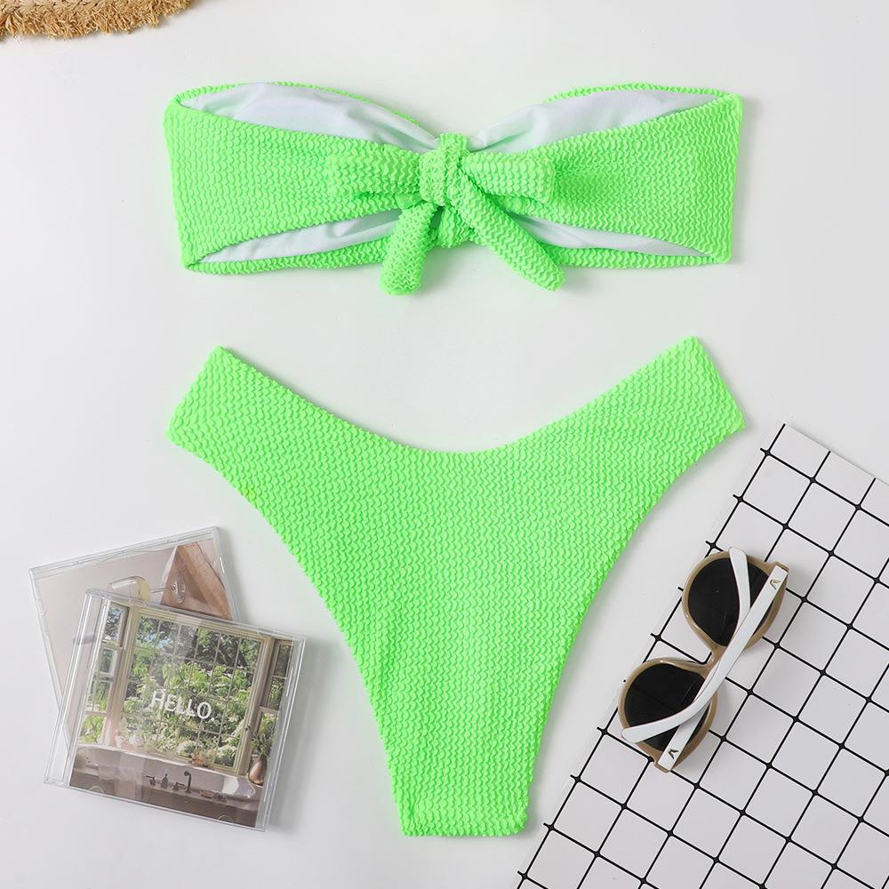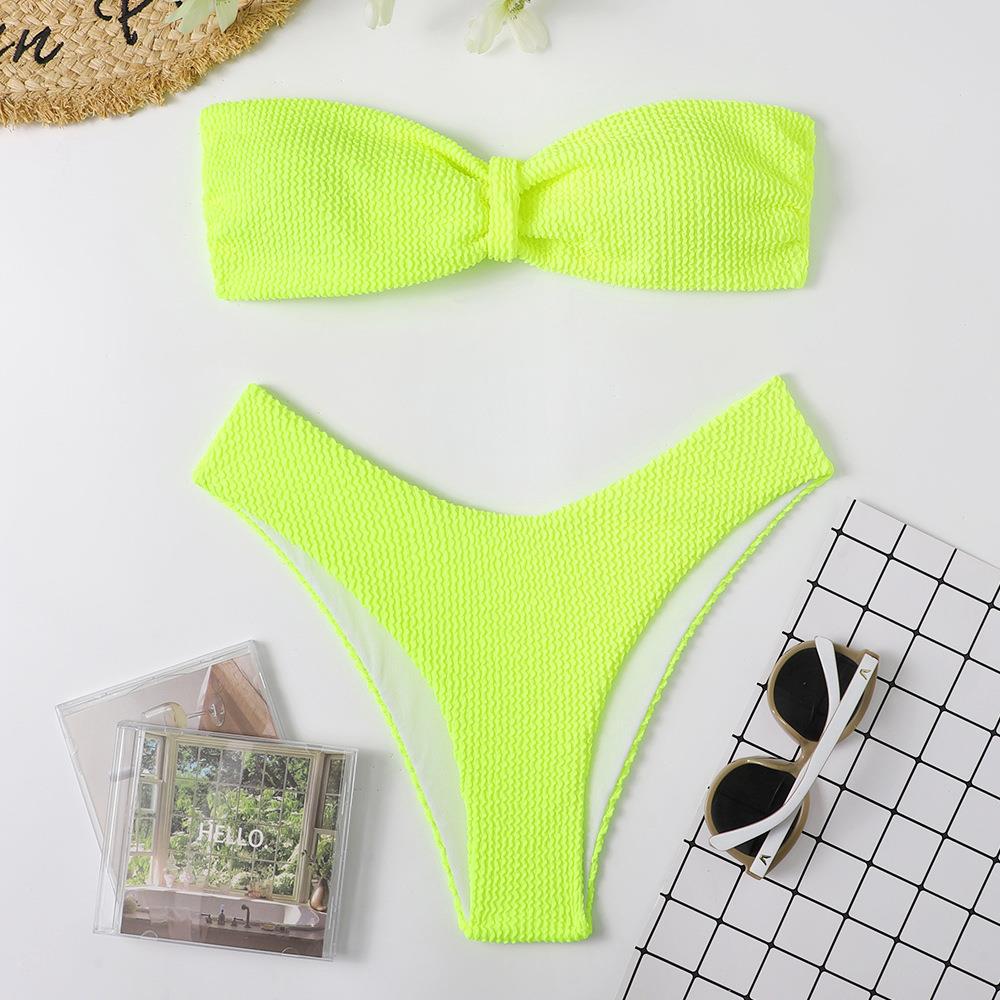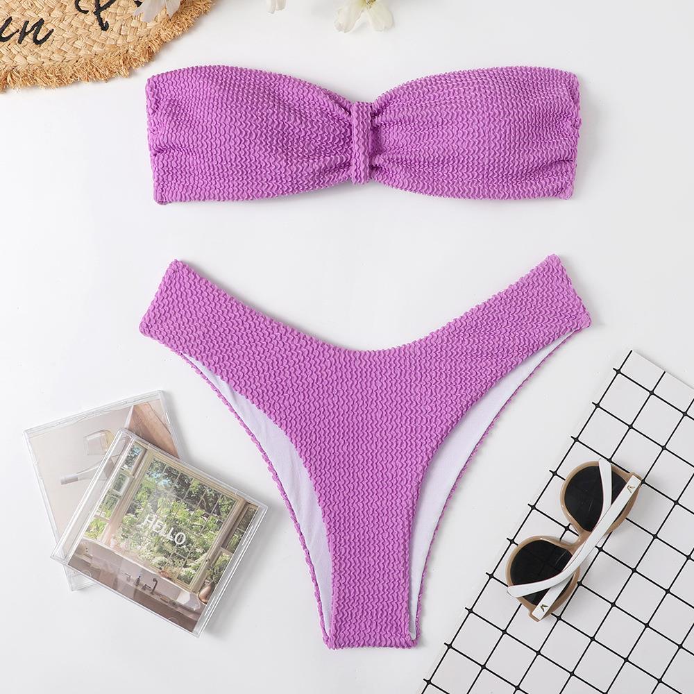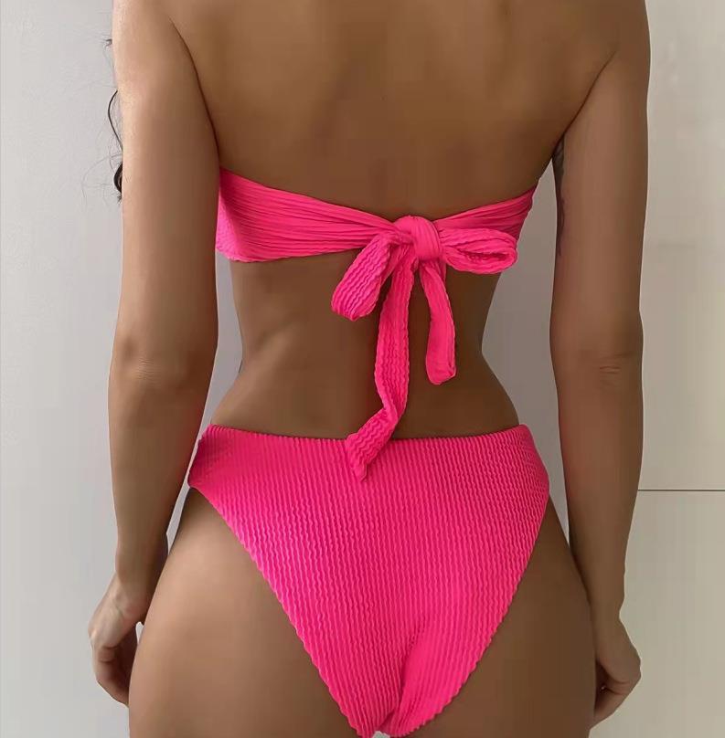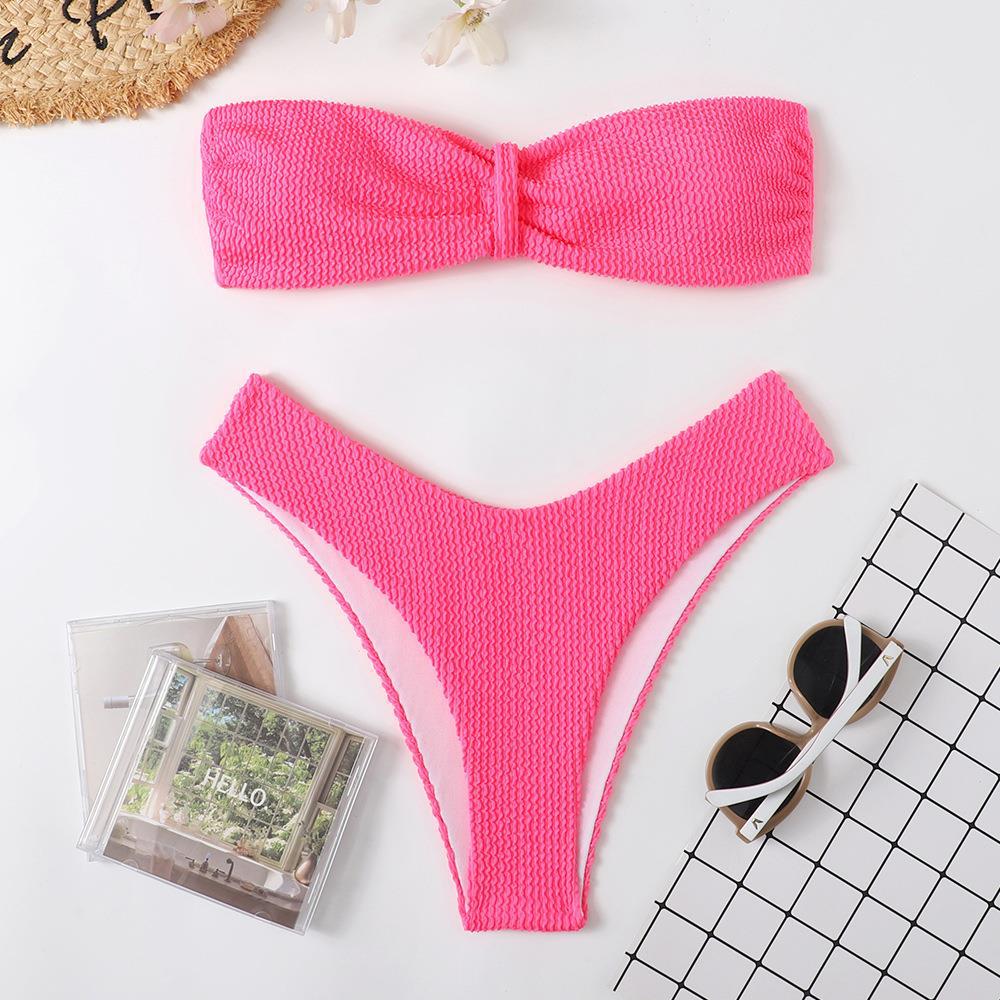 Maillot de bain bikini en tissu ondulé pour femme, haut tube couleur bonbon fendu