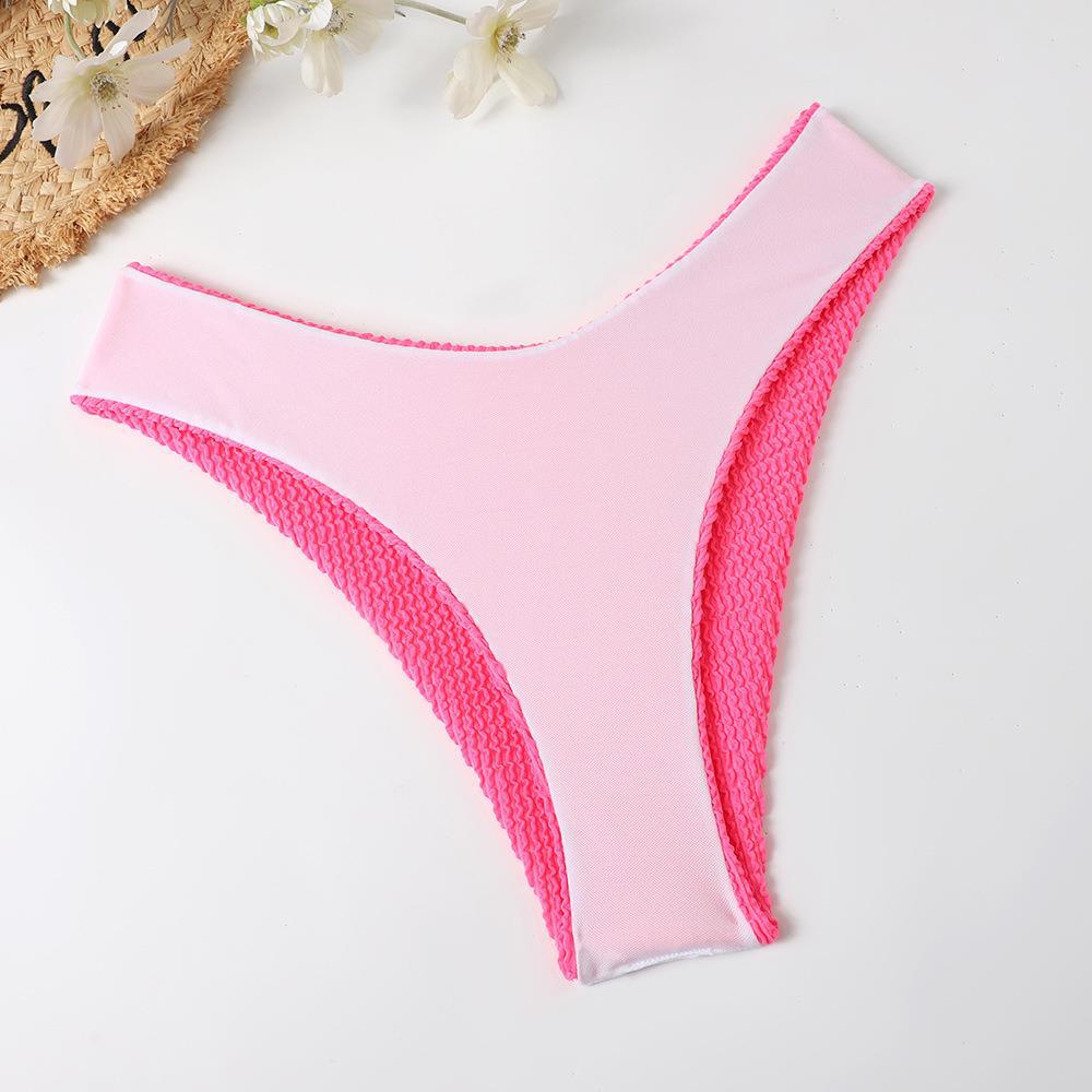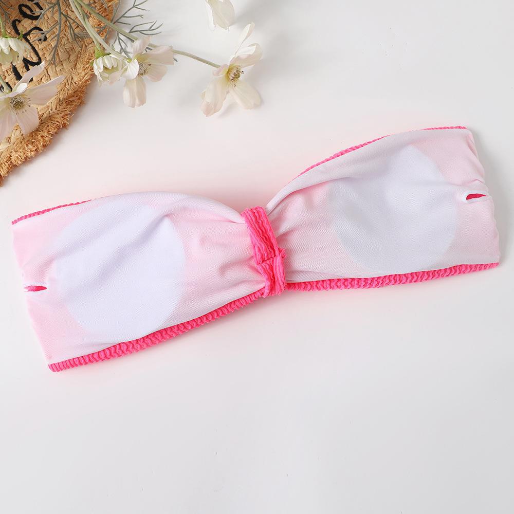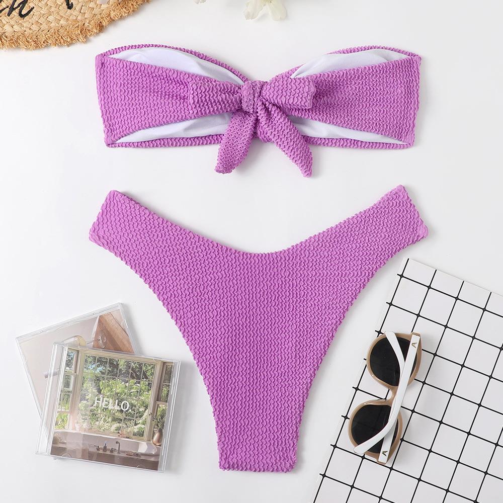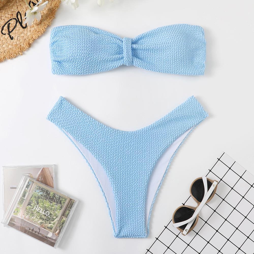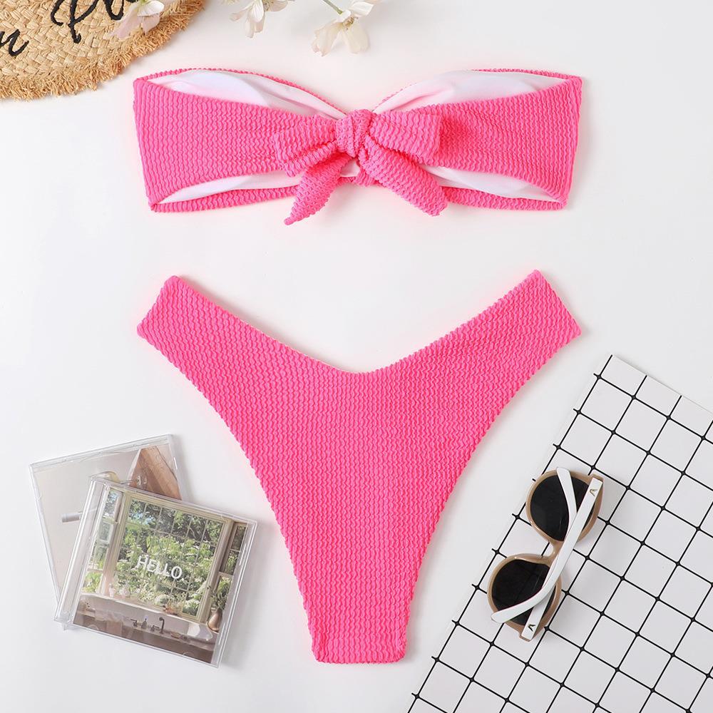 Maillot de bain bikini en tissu ondulé pour femme, haut tube couleur bonbon fendu