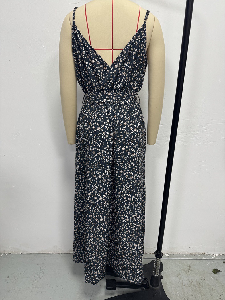Women Clothes Summer Bohemian Strap Dress Printed Long Slit Maxi Dress