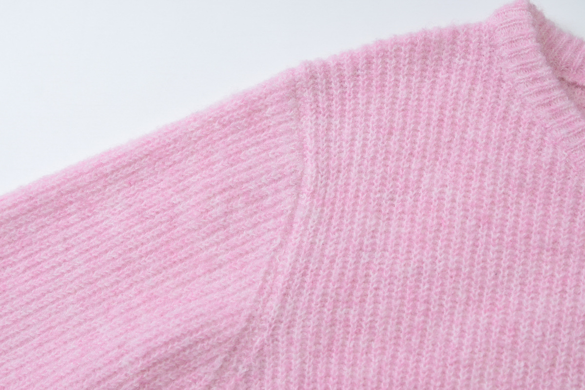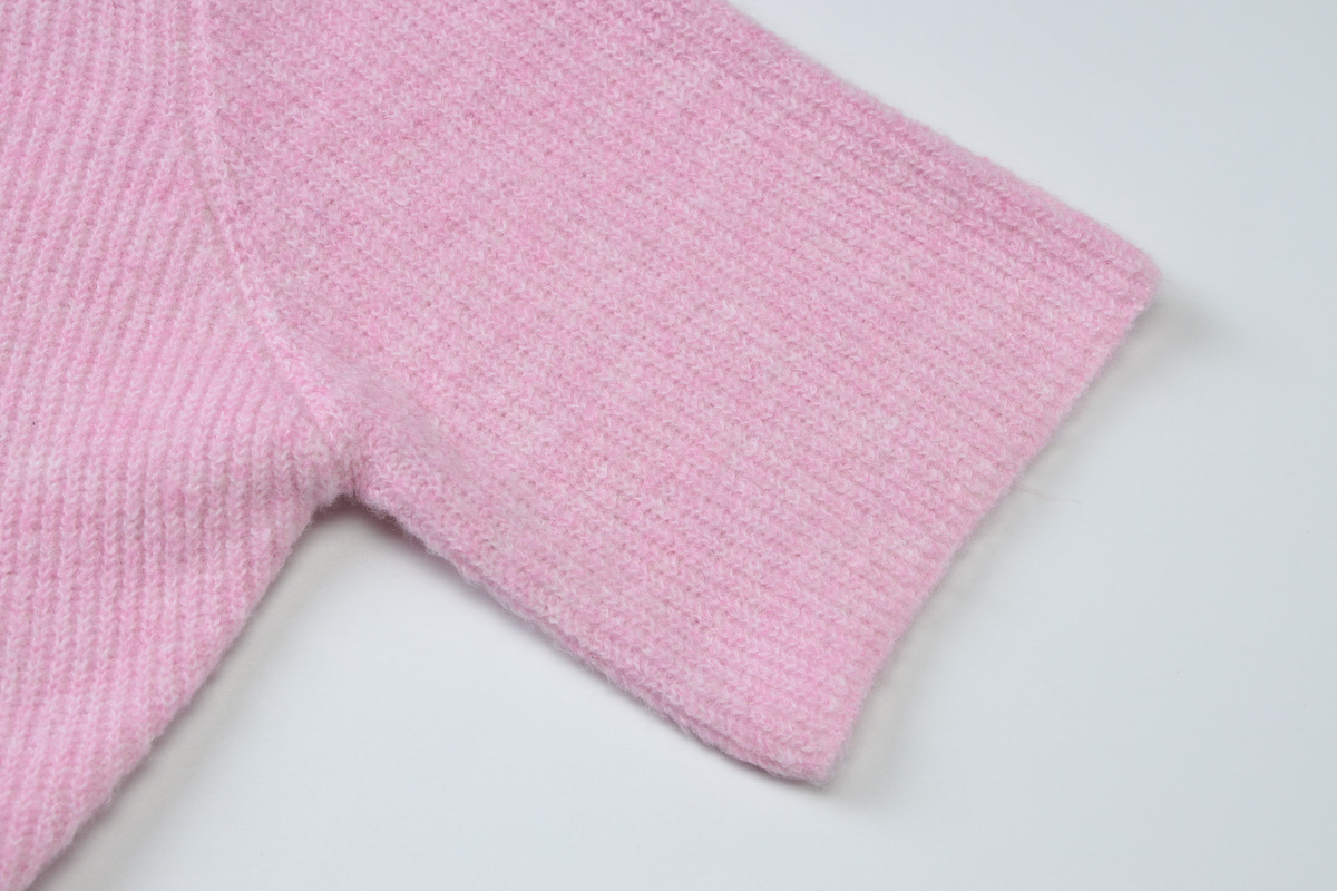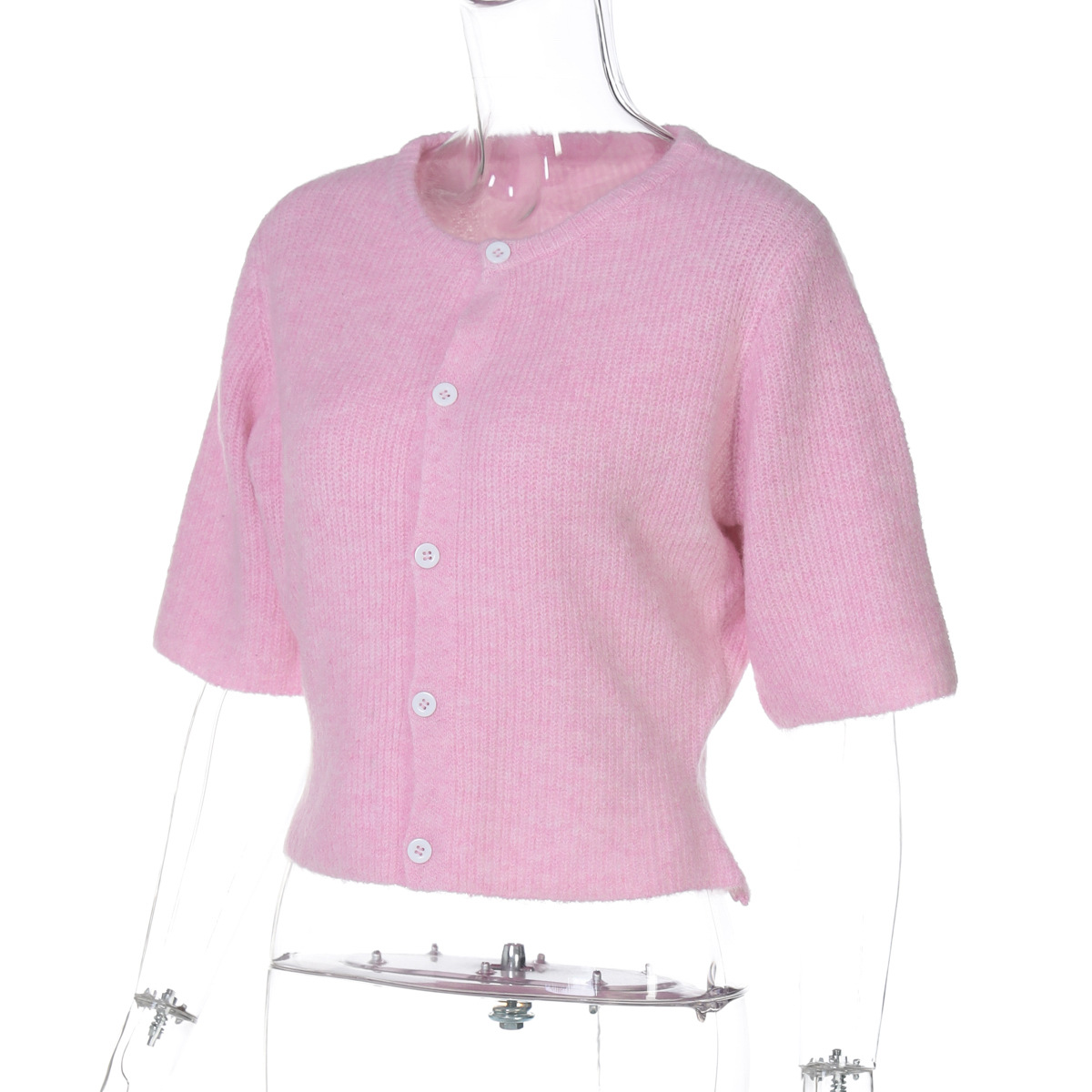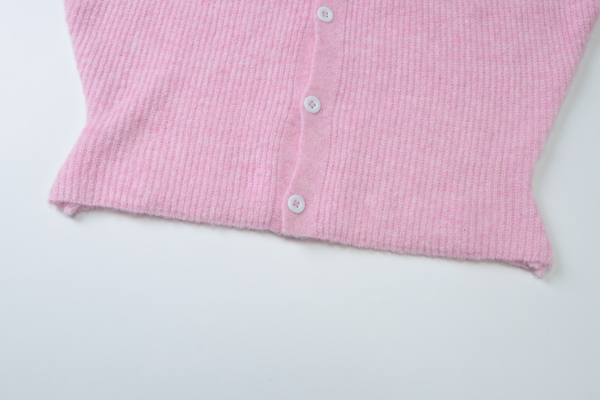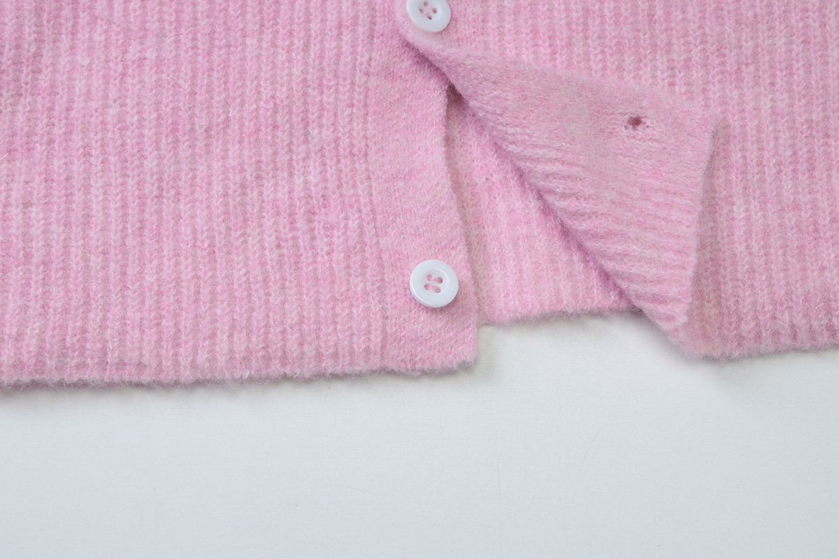Women Clothing Autumn Crew Neck Three Quarter Sleeve Knitted Buckle Cardigan Top
