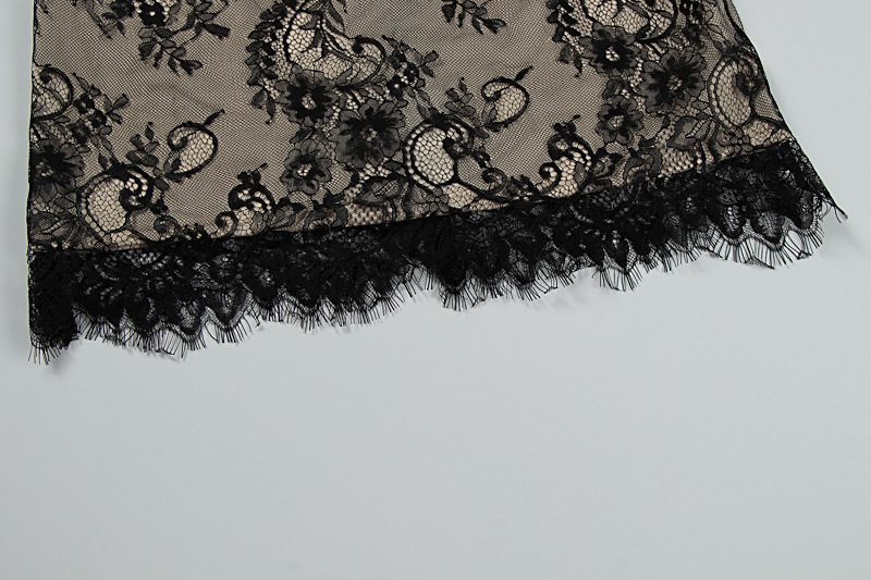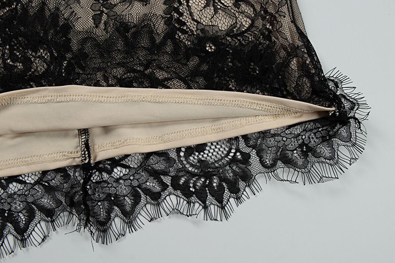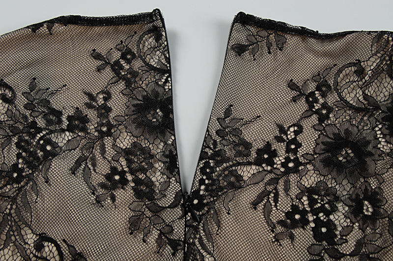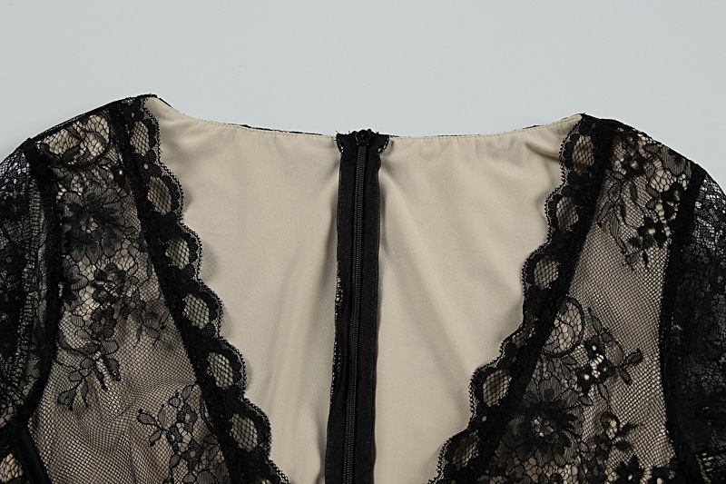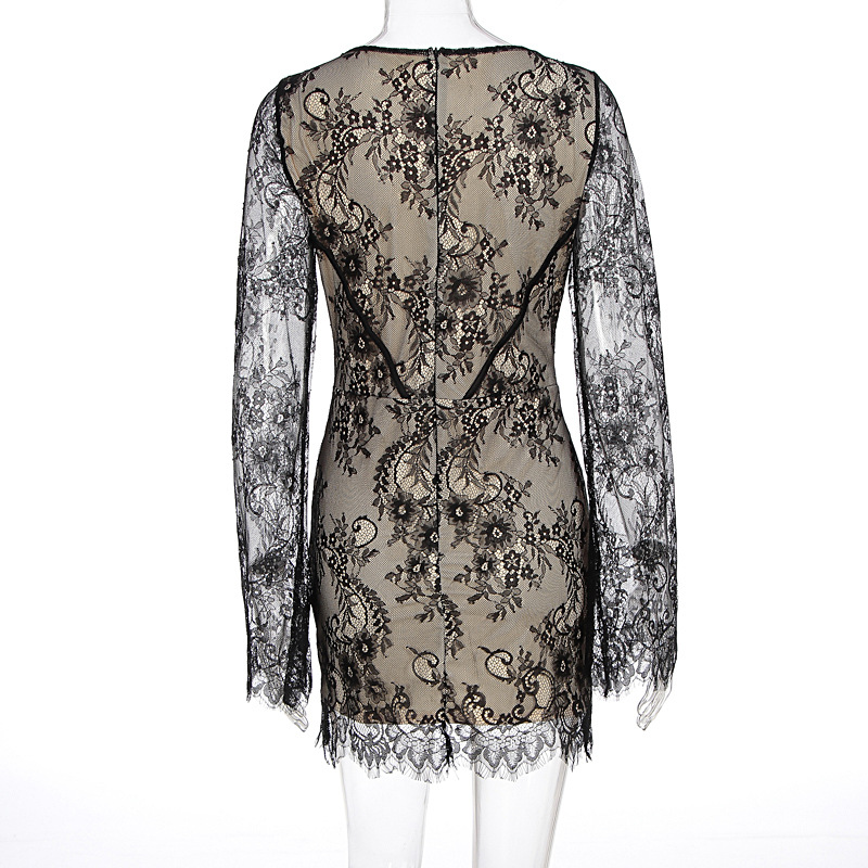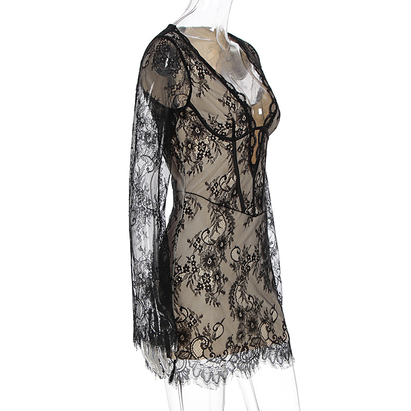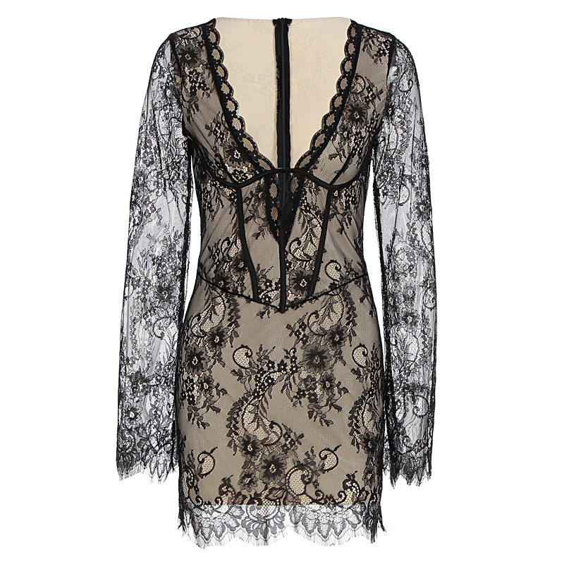 Women Clothing Autumn Sexy Adult Lady like Woman Lace Deep V Plunge Long Sleeve Slim Hip Bag Dress