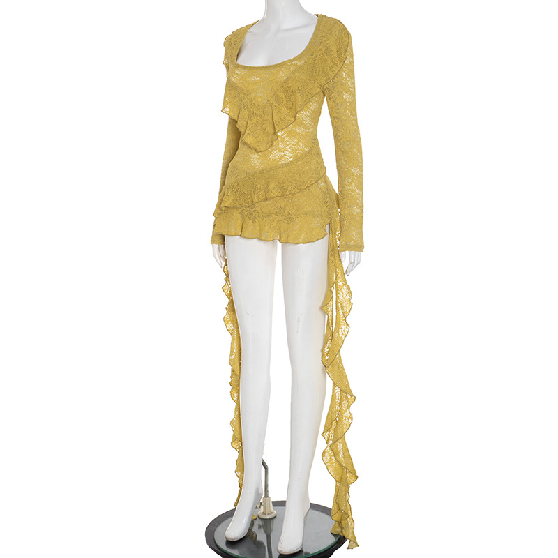 Element: Asymmetric,Lace/Tulle/Fishnet,Ruffle