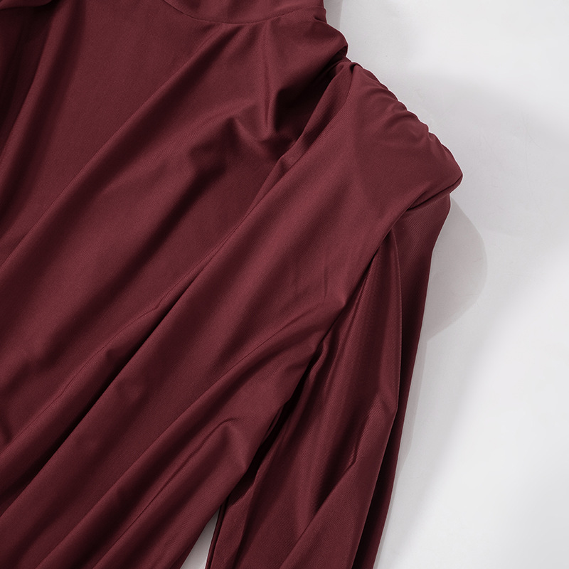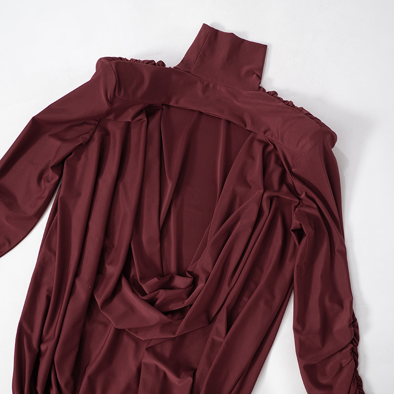 Robe sexy dos nu à col roulé et épaules rembourrées pour femme, vêtement d'automne et d'hiver ample et plissé