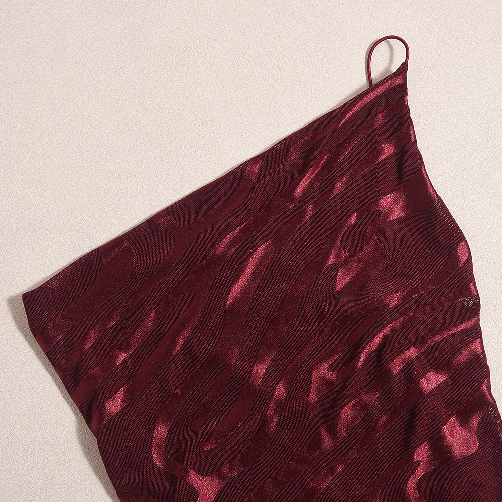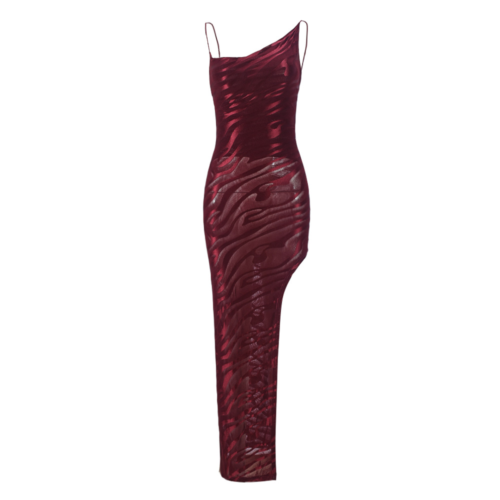 Robe sexy à bretelles et col diagonal pour femme, dos nu, en maille floquée, printemps