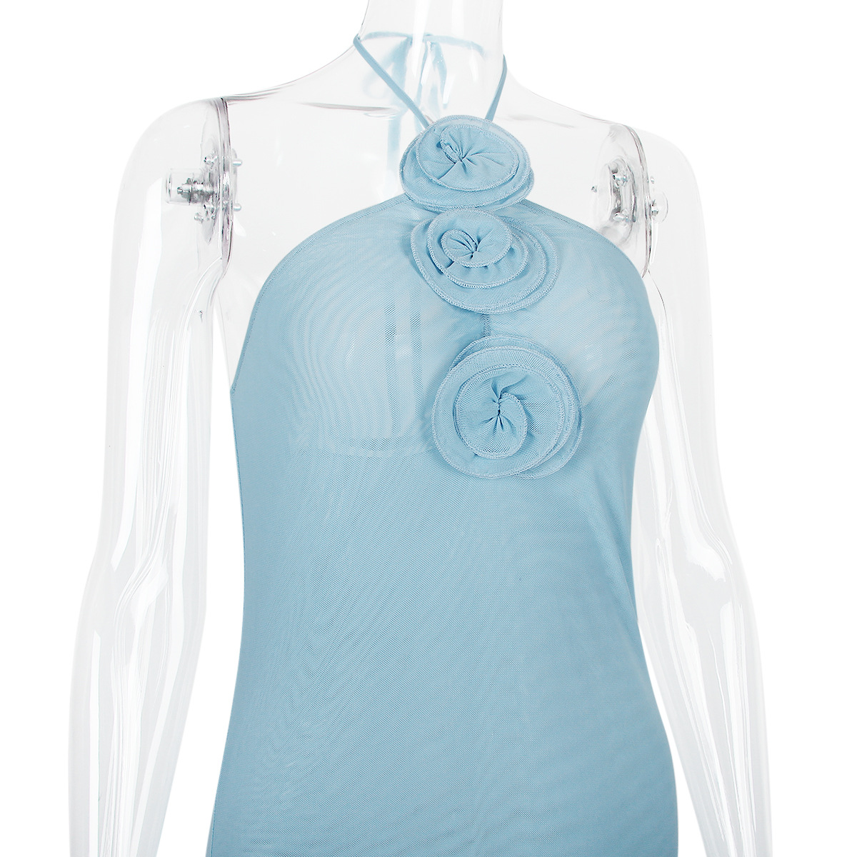 Robe dos nu en maille à fleurs pour femme, tenue de soirée à serpillière, robe dos nu, douce et épicée