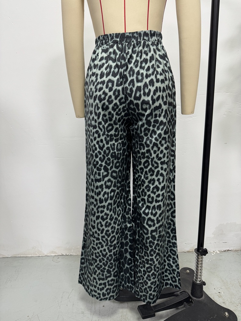 Women Clothing Satin Casual Pants Fall High Waist Leopard Print Loose Straight Satin Wide Leg Pants