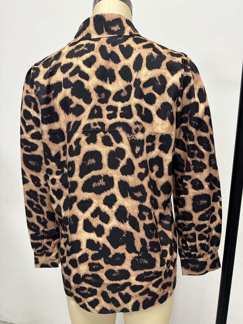 Women Clothing Satin Shirt Early Autumn Casual Leopard Print Sexy Long Sleeved Top