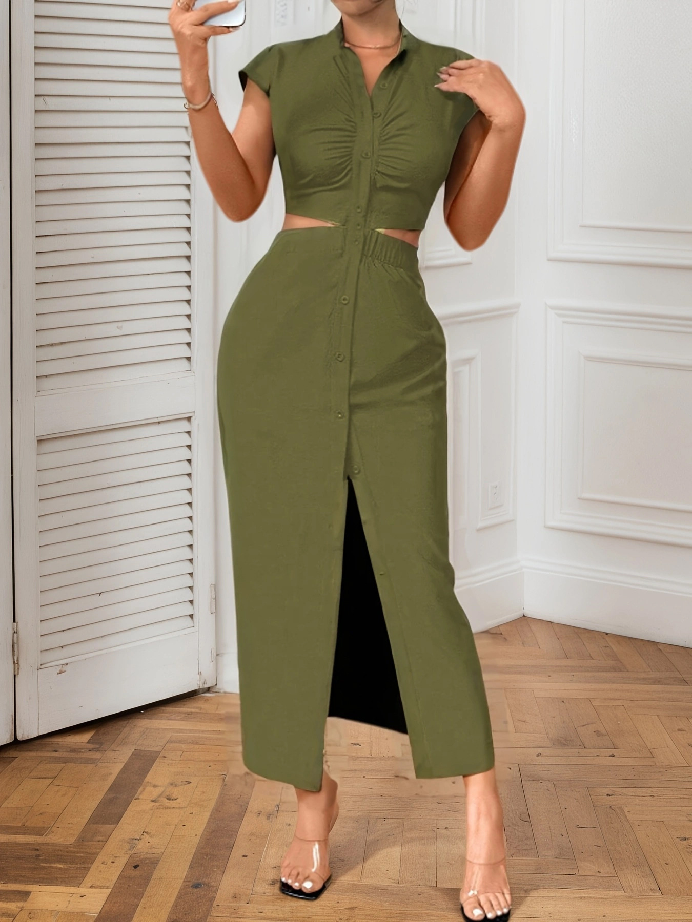 Element: Button,Ruched,Backless,Cutout