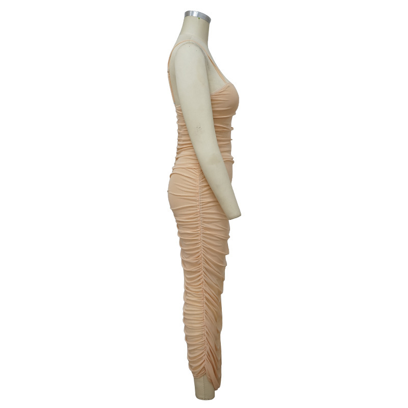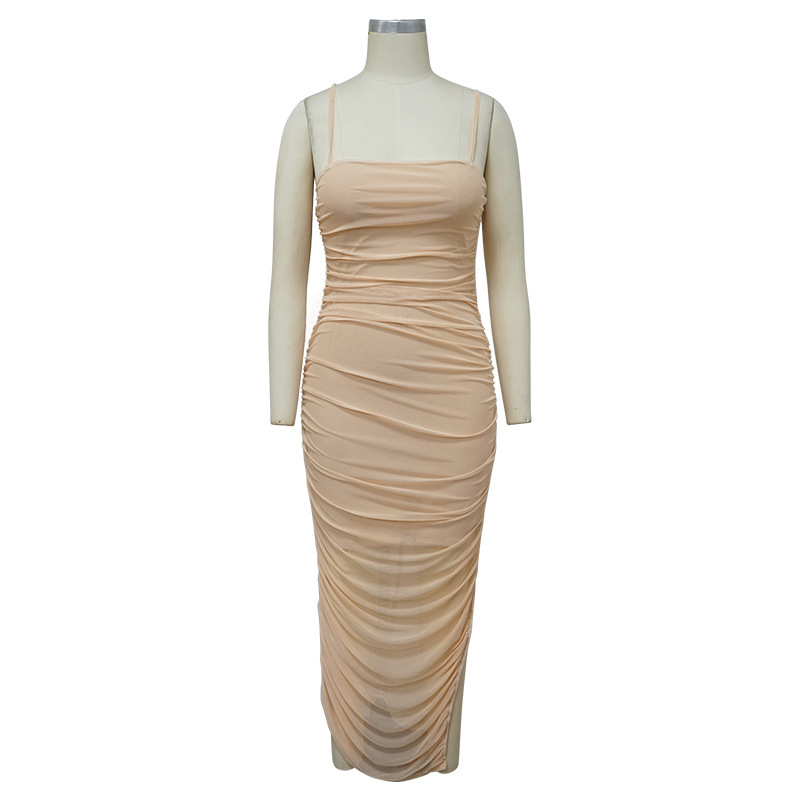 Robe plissée mi-longue sans manches pour femme, vêtement moulant fendu