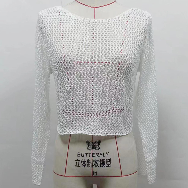 Vêtements pour femmes, couleur unie, tricoté, plage, chemisier sexy à manches longues, vêtements de protection solaire