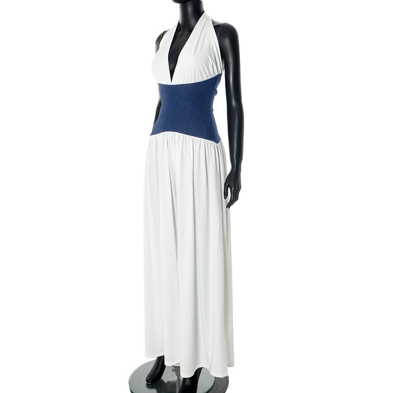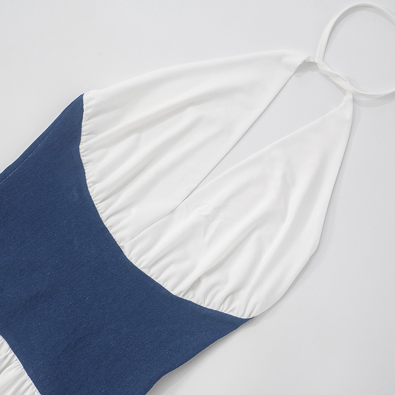 Vêtements pour femmes printemps été licou sangle contraste couleur fermeture éclair tube haut jambe large combinaison ample