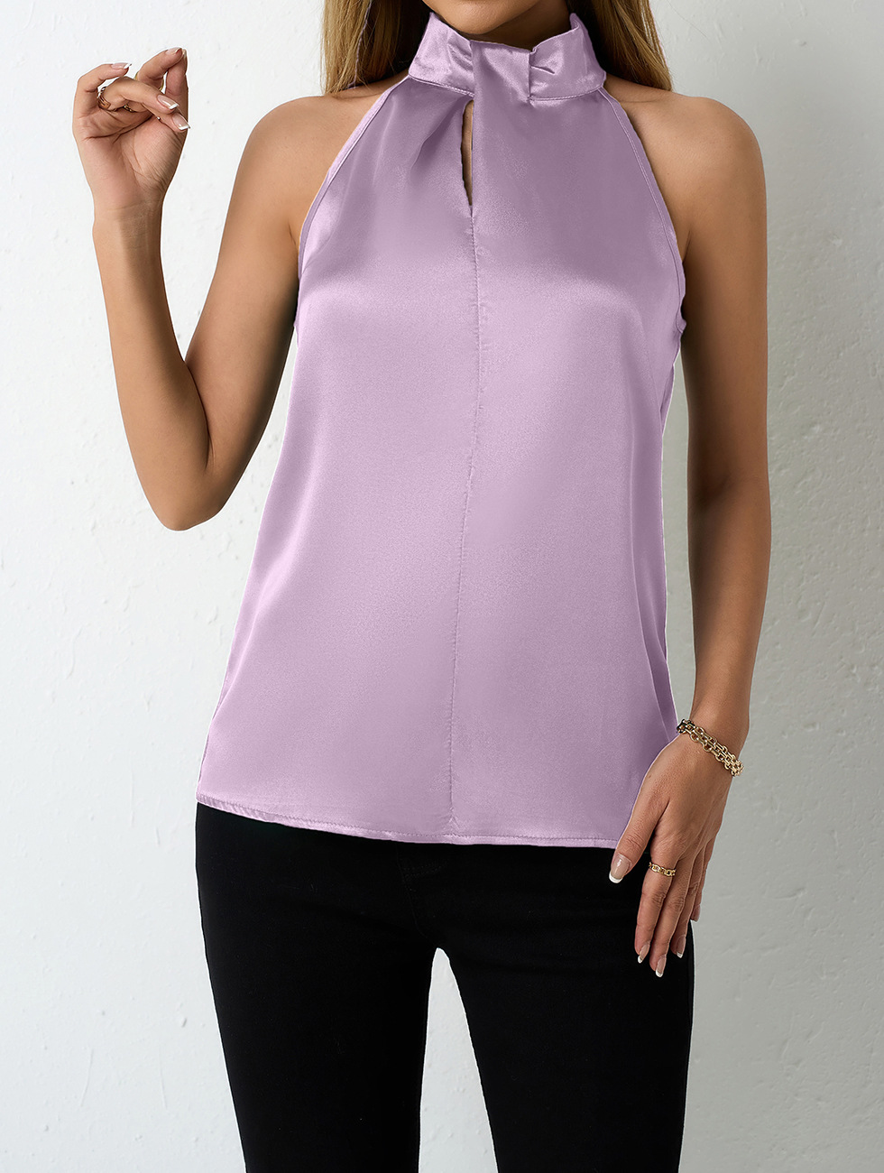 Women Clothing Spring Summer Satin Vest Spring Summer V neck Casual Spaghetti Strap Camisole Top