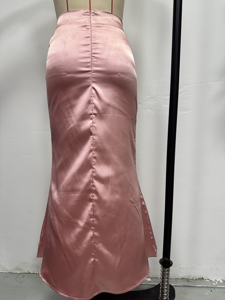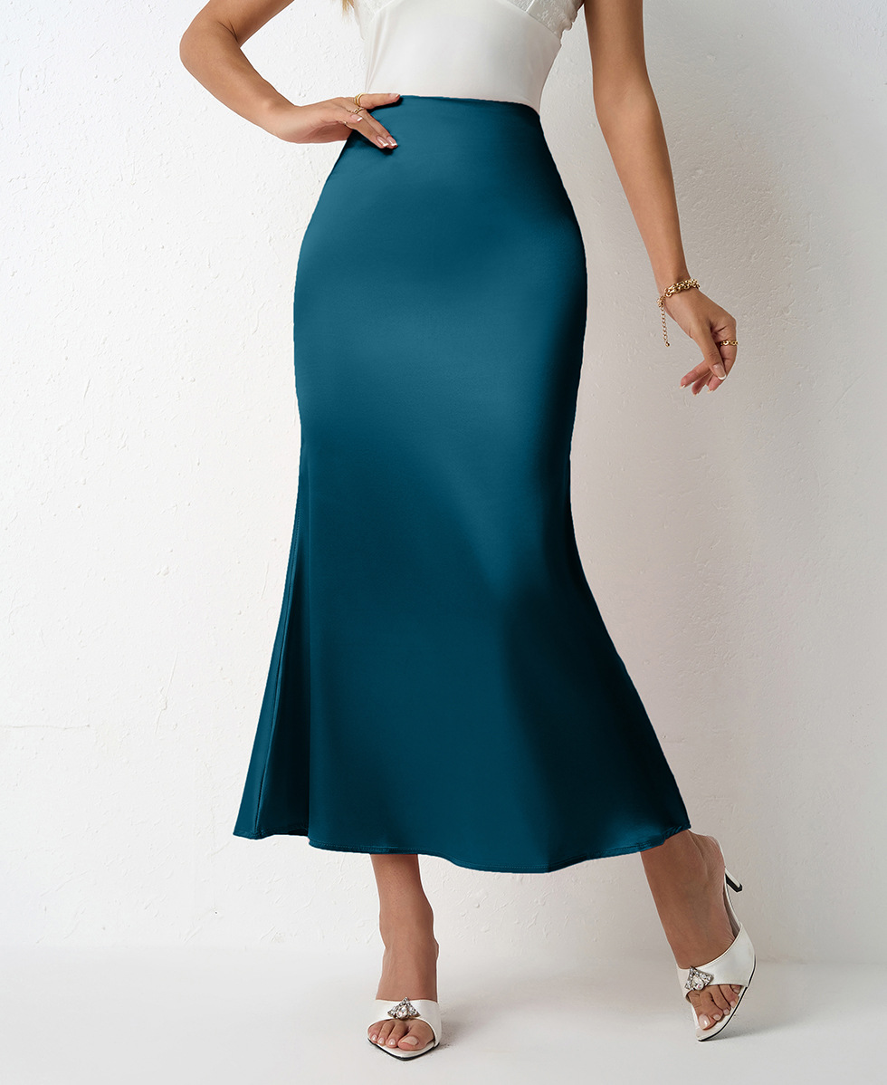 Women Clothing Spring Summer Slim Satin Skirt Satin Mid Length Sheath Fishtail Skirt
