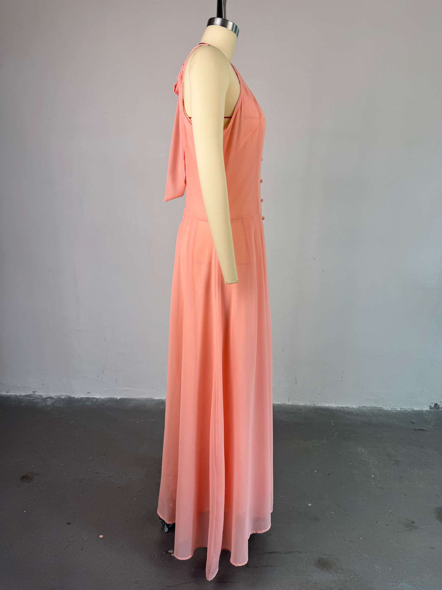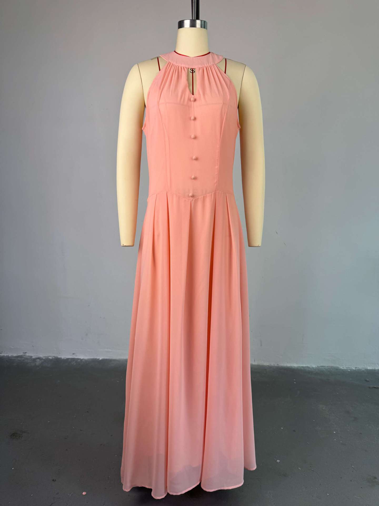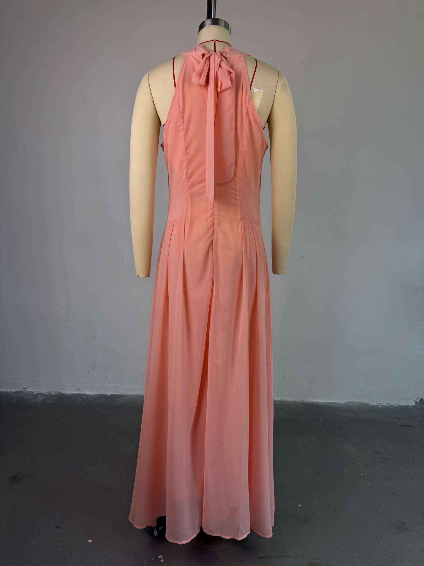 Robe mi-longue rose élégante d'été pour femme, col licou, sans manches, amincissante à la taille