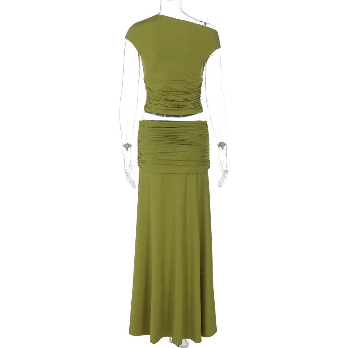 Women Clothing Summer One Shoulder Pleated Slim Fit Skirt Set