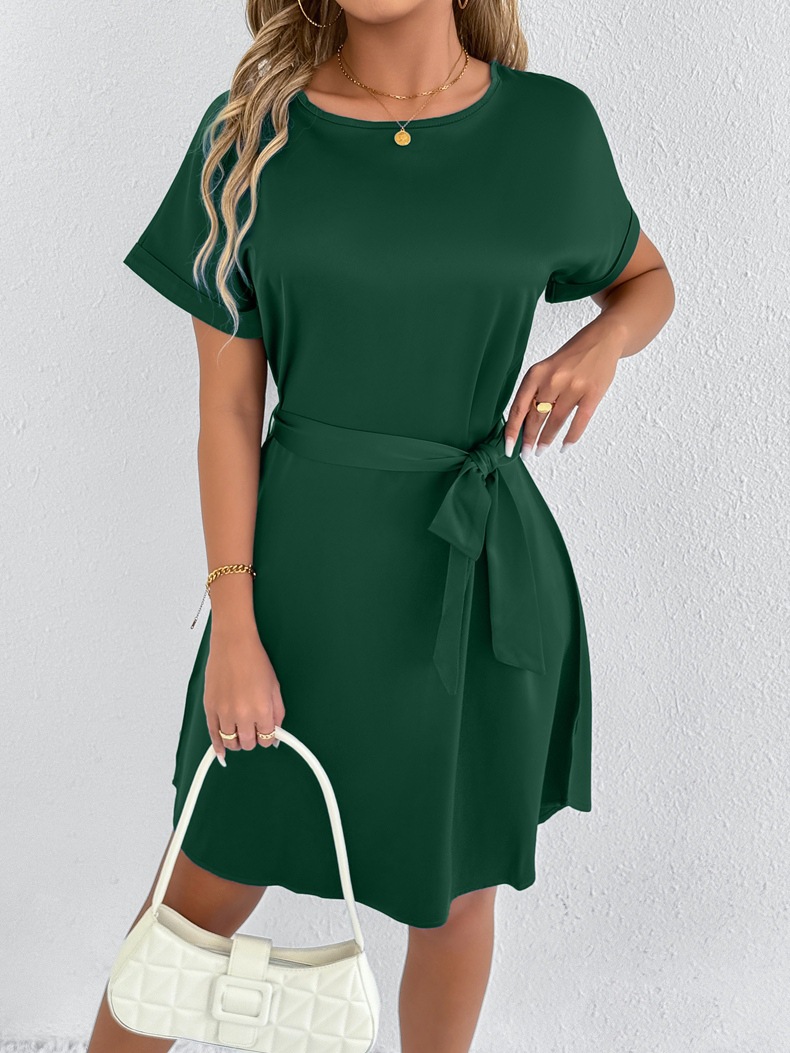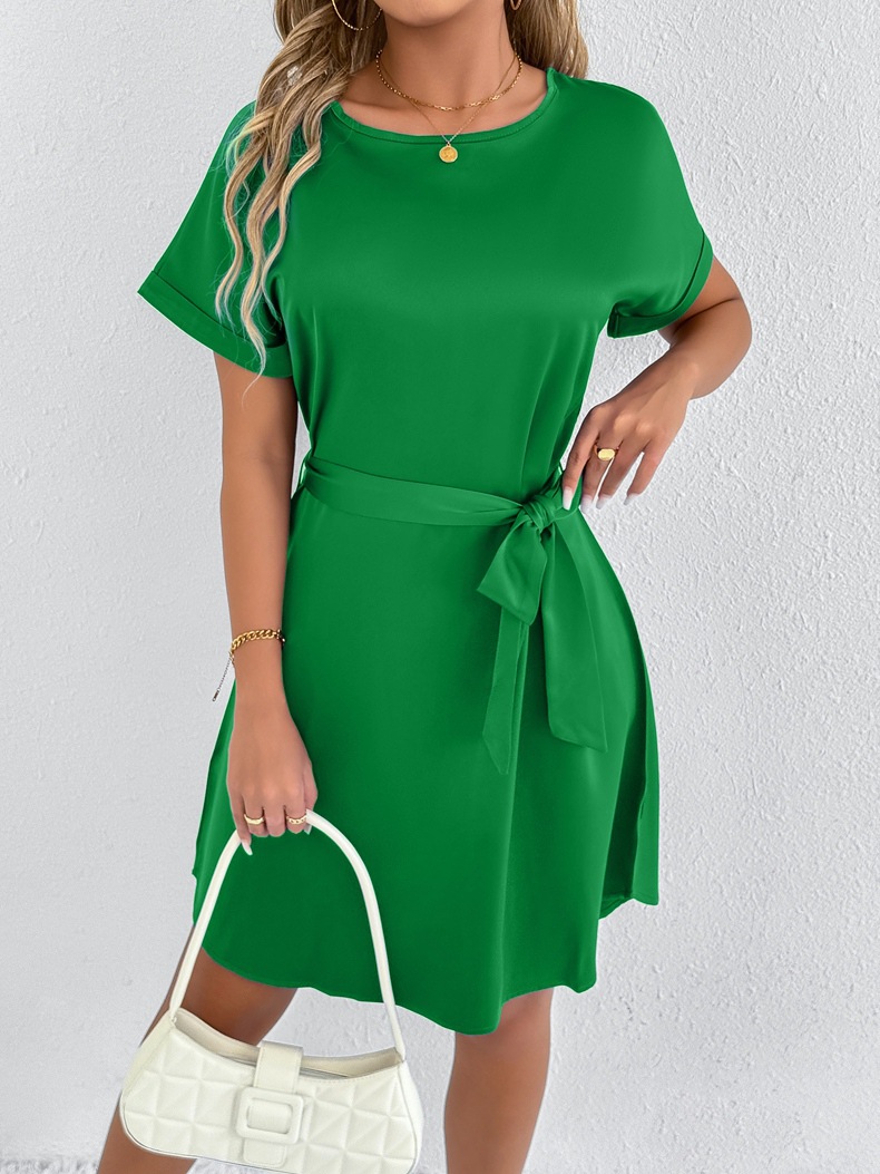Women Clothing Summer Short Sleeve Satin Dress High Grade Small Satin Dress