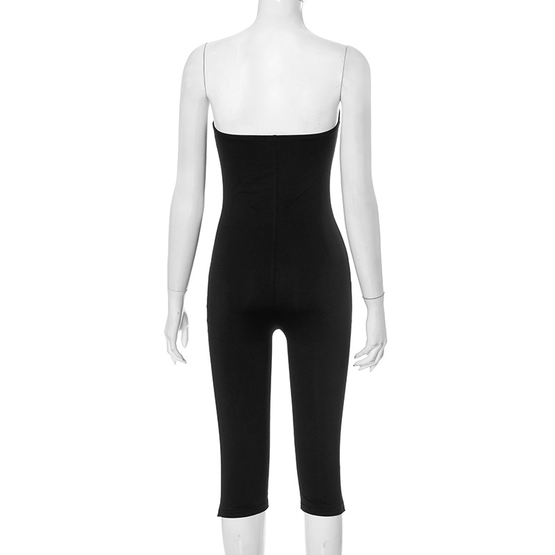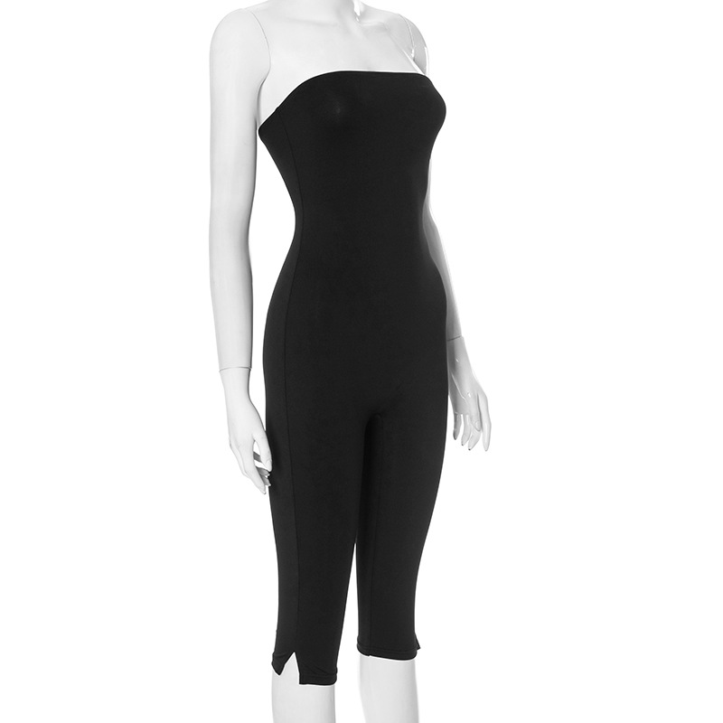 Combinaison courte et slim en plastique sans manches à épaules dénudées pour femme, couleur unie, été
