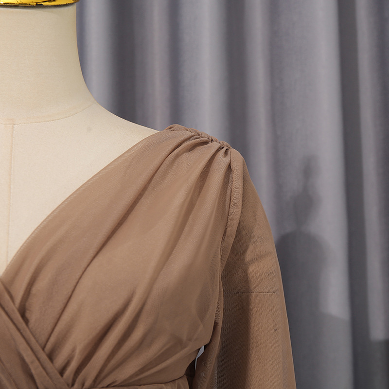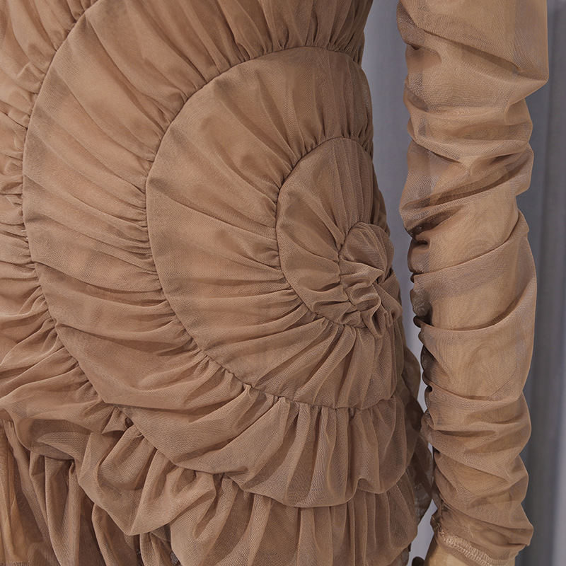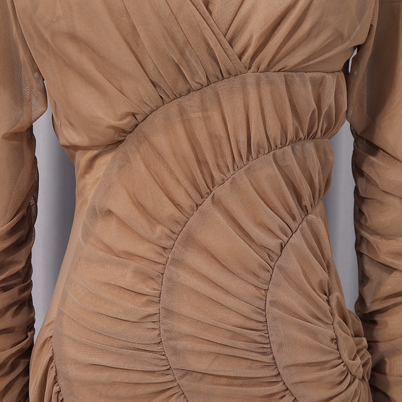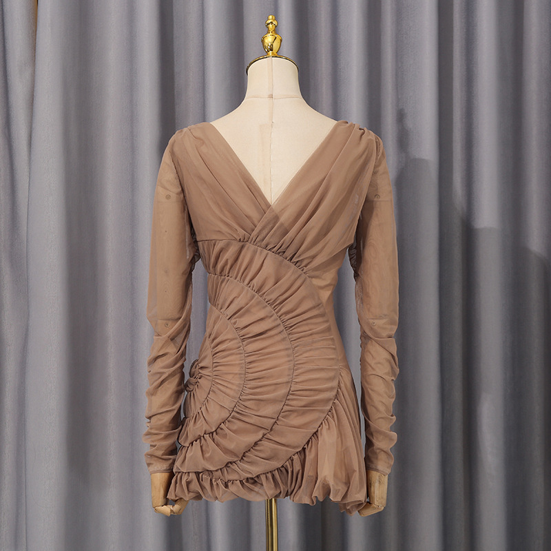 Women French Pleated Autumn Young Sexy Solid Color Long Sleeve Slim Fit Slimming Short Dress