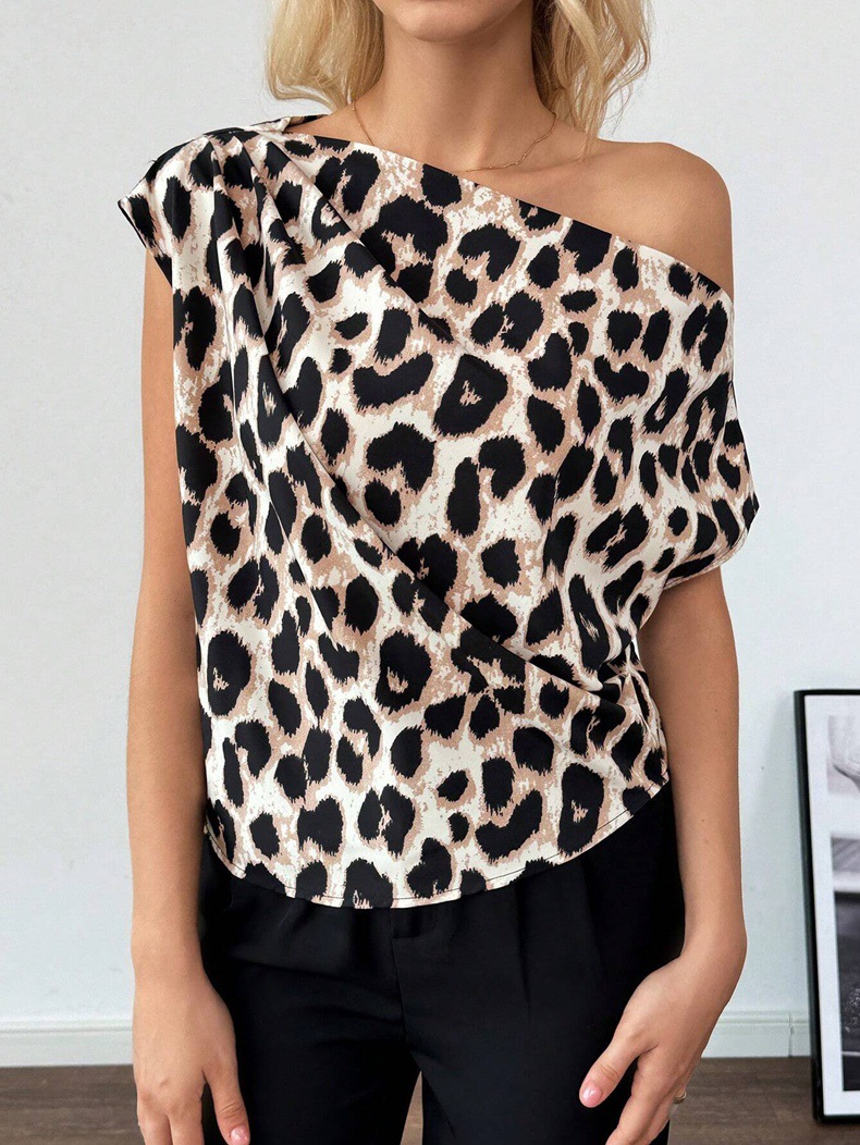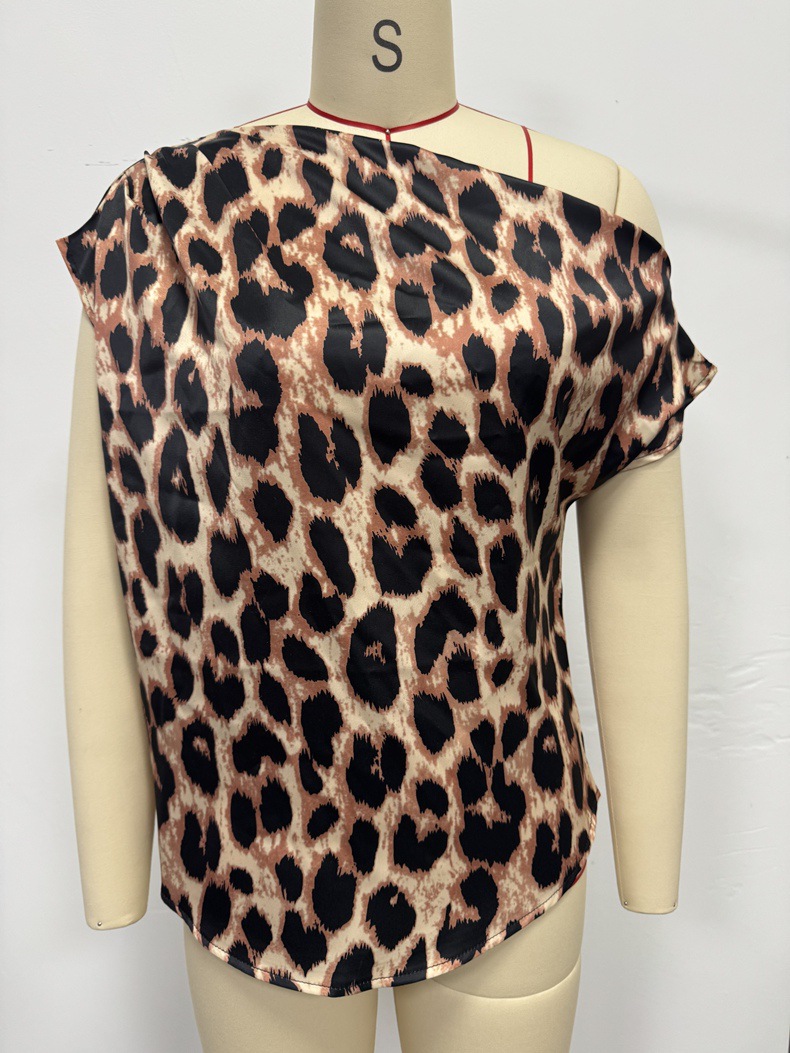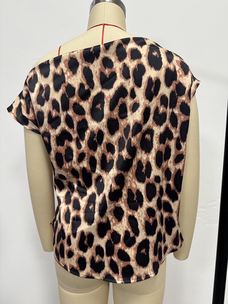 Chemise en satin pour femme, top sexy à imprimé léopard, chemise d'été en satin