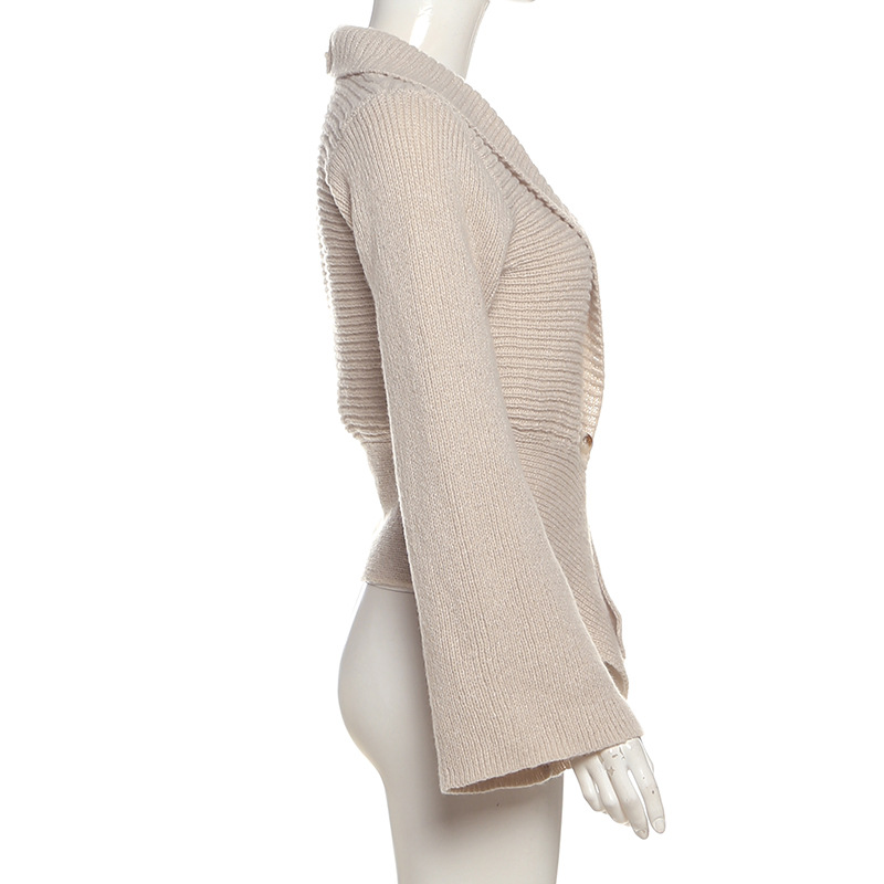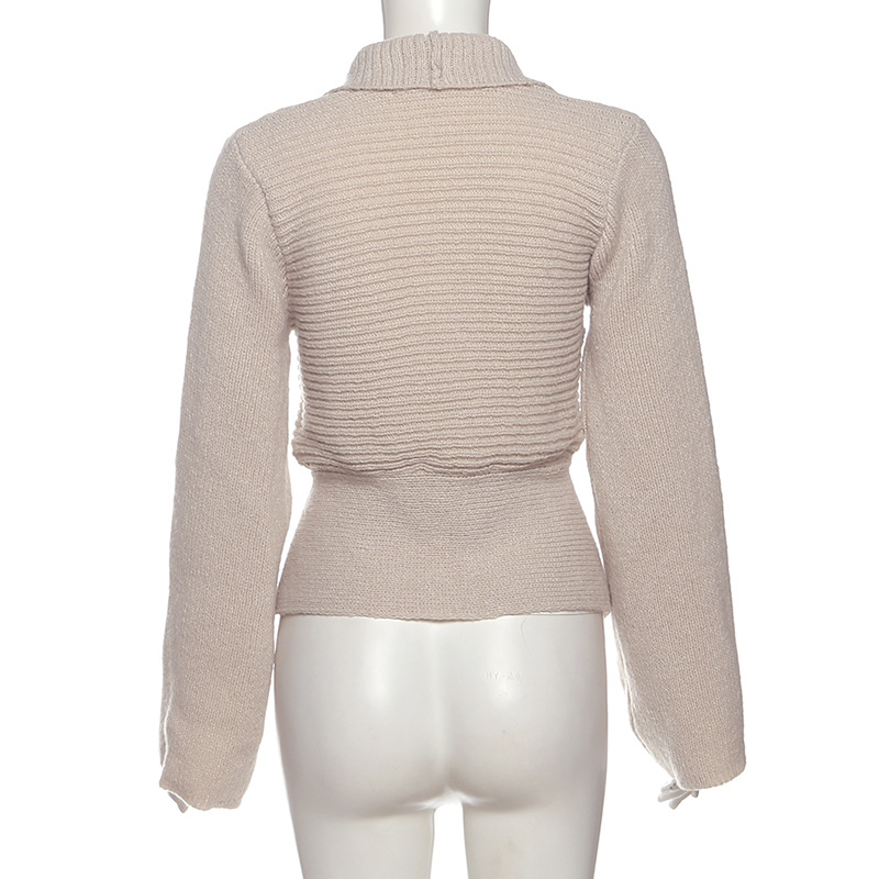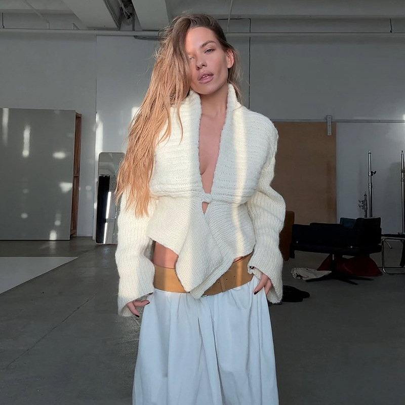 Autumn Winter Women Clothing Deep V Plunge neck Sexy Hollow Out Cutout Loose Sweater Cardigan Coat