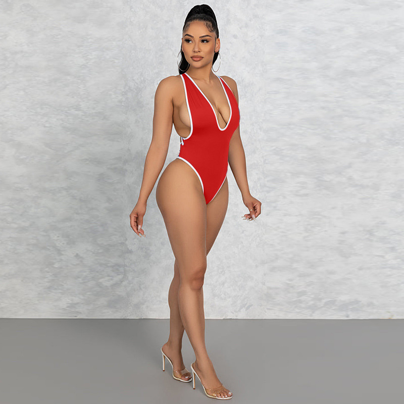 Maillot de bain une pièce sexy pour femme, bikini, gilet en T à trois points