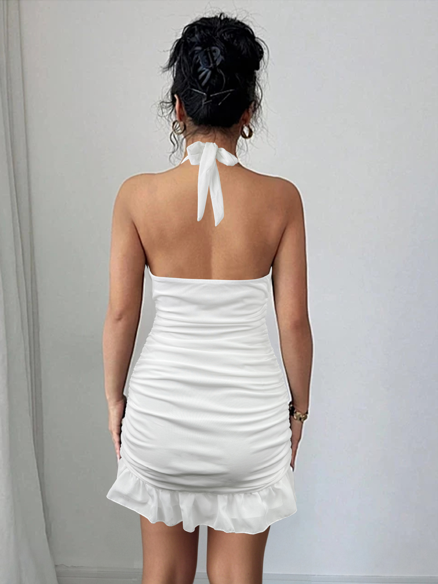Robe d'été sexy plissée à col plongeant en V pour femme, tenue de plage