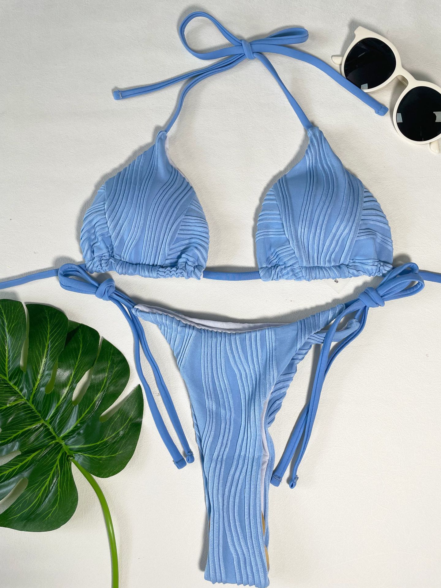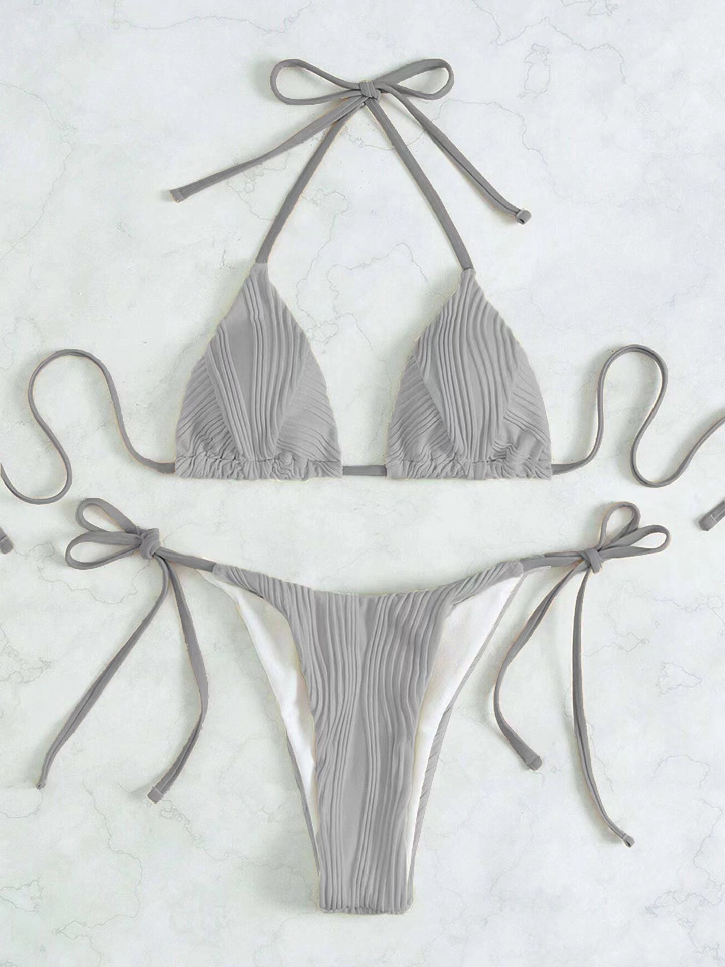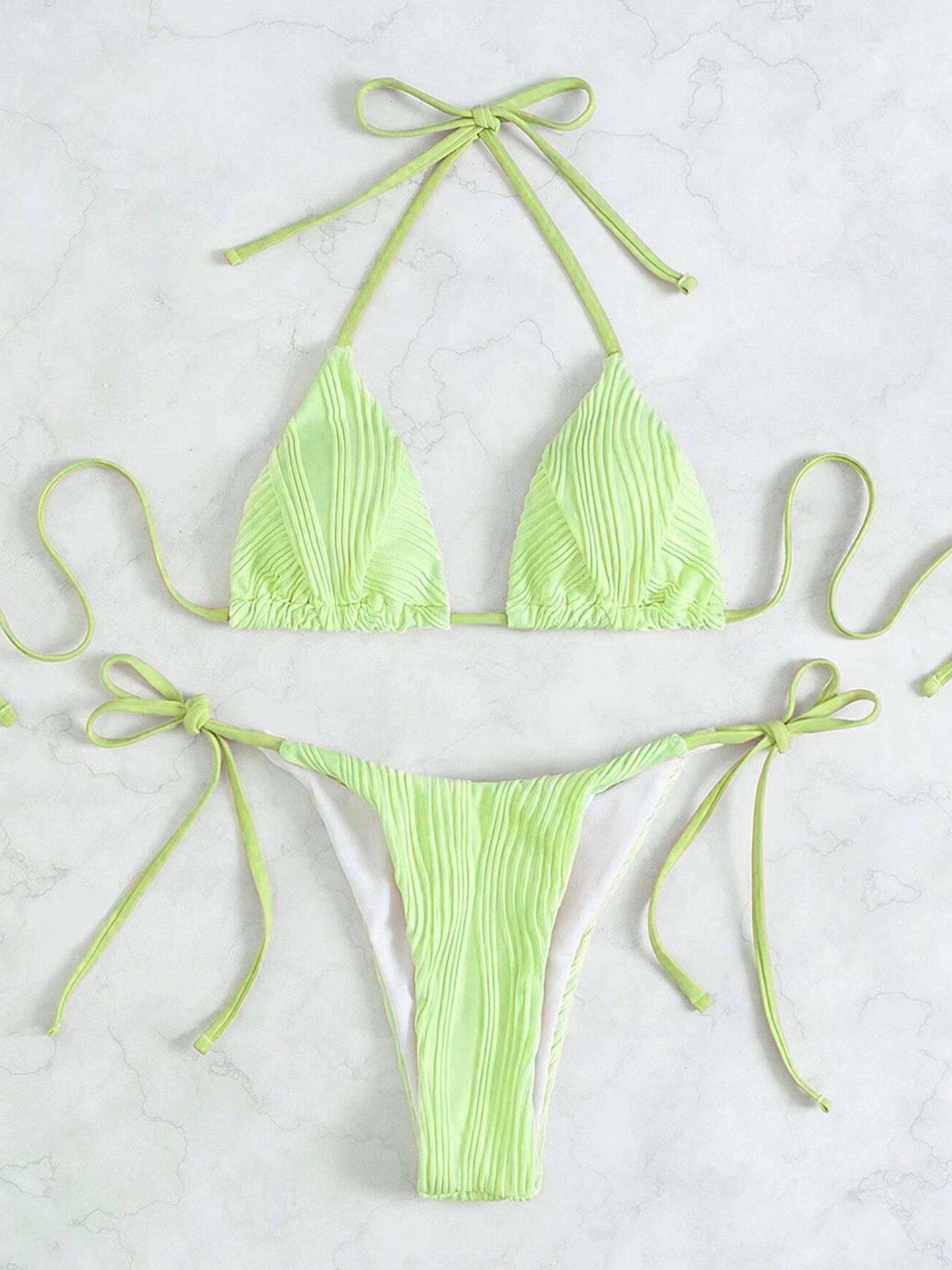 Maillot de bain sexy rayé couleur unie bikini à lacets fendu maillot de bain femme