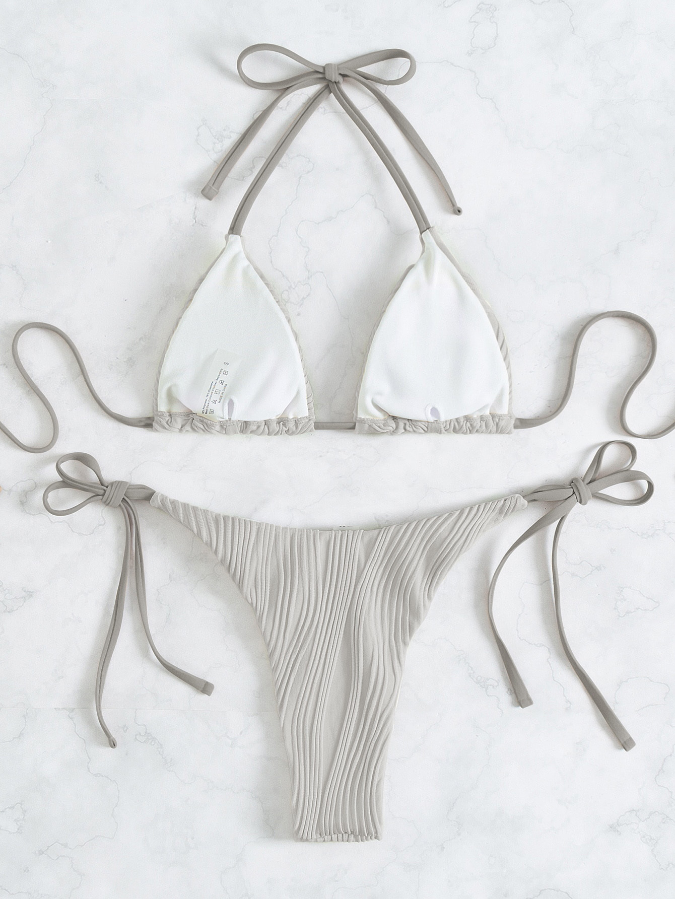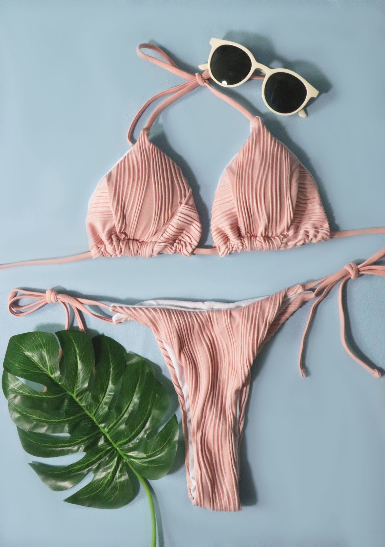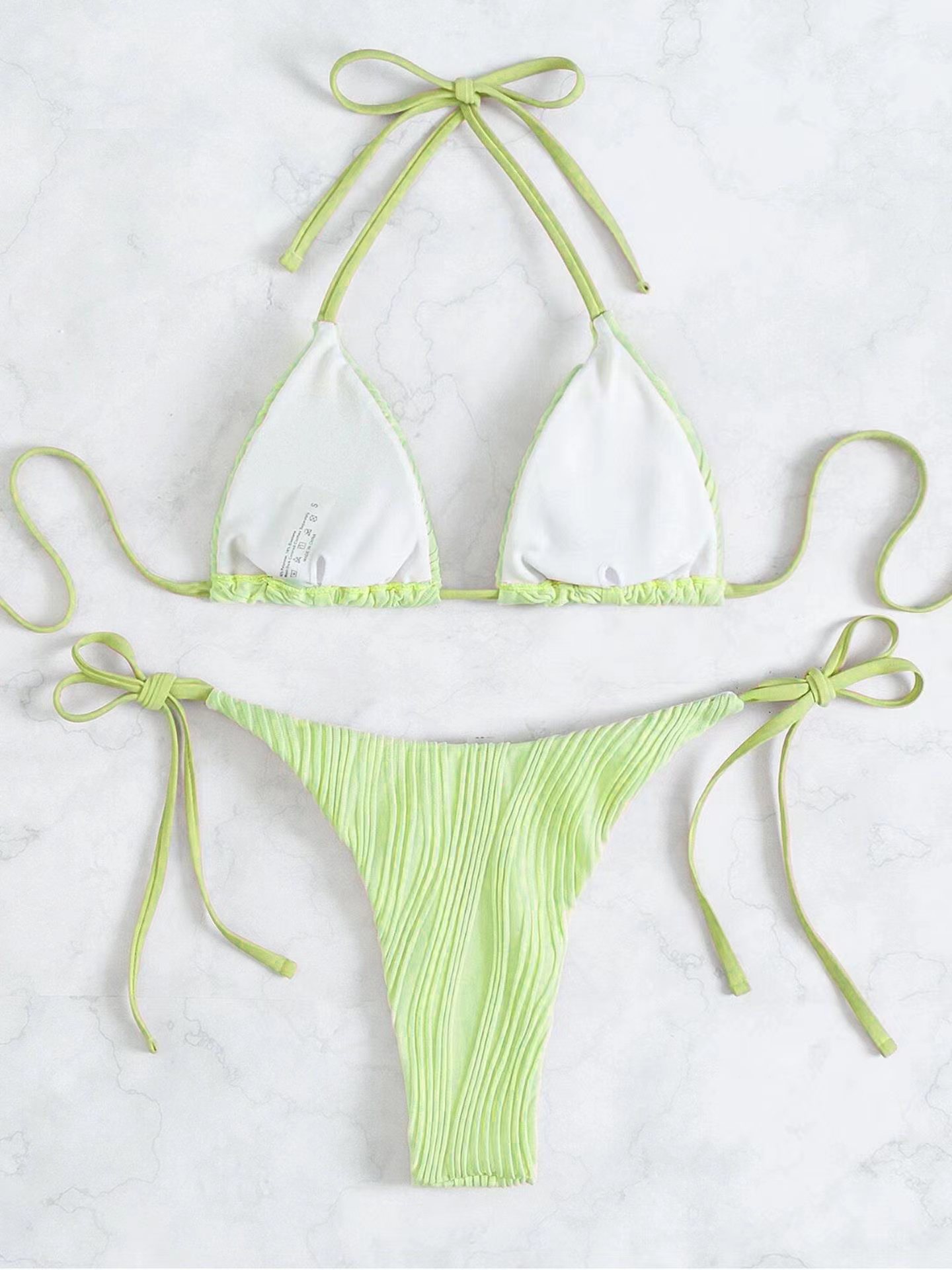 Maillot de bain sexy rayé couleur unie bikini à lacets fendu maillot de bain femme