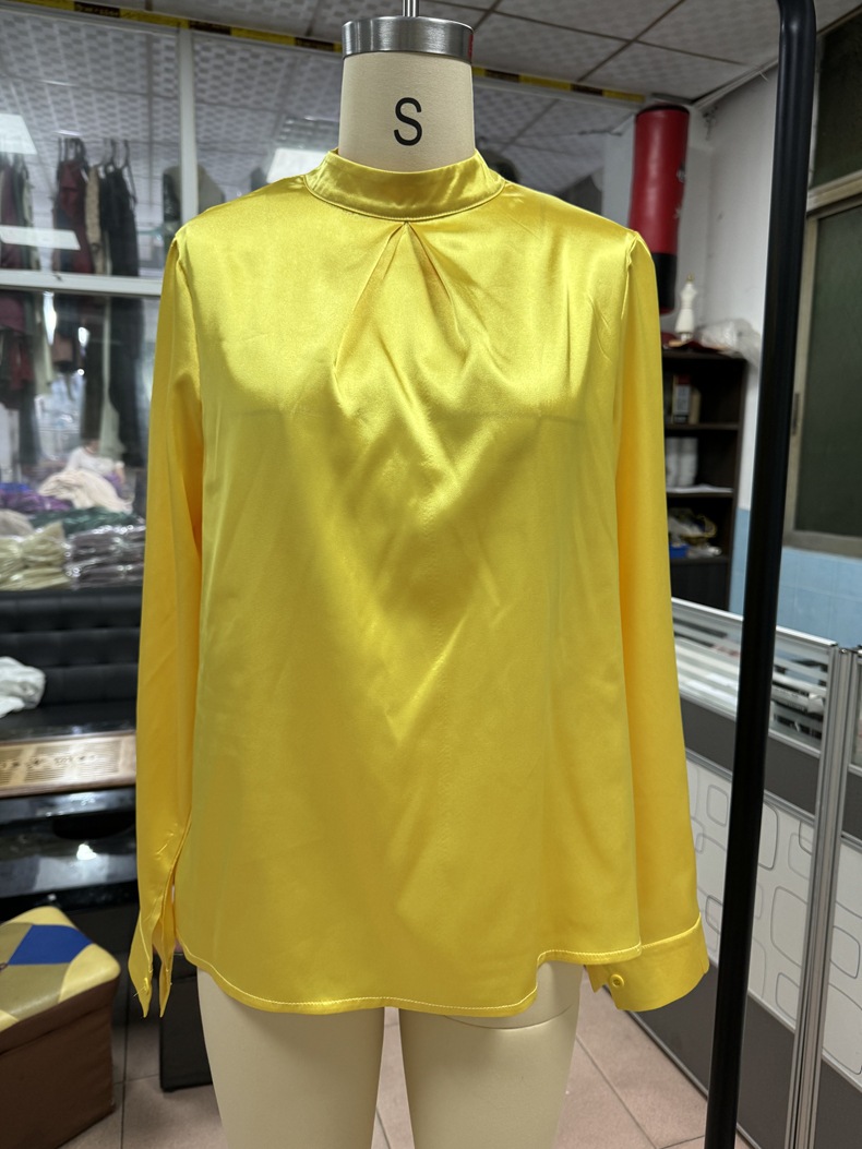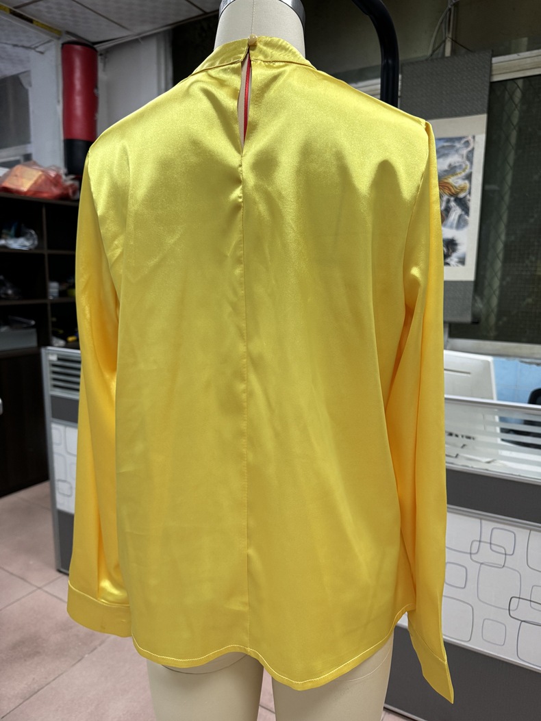 Women Clothing Spring Summer Long Sleeve Satin Top Shirt