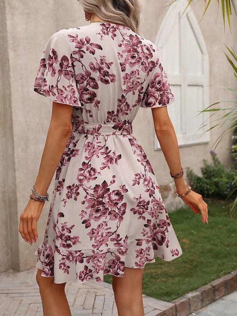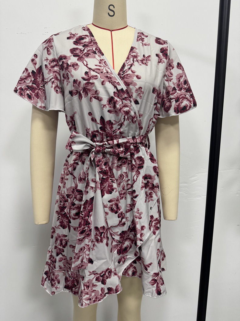 Women Clothing Summer Printed Dress Spotted Ruffled Wrap Lace up