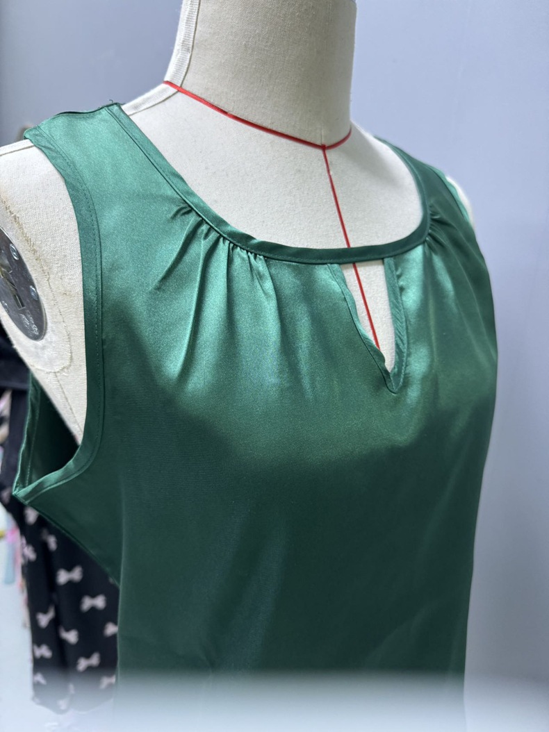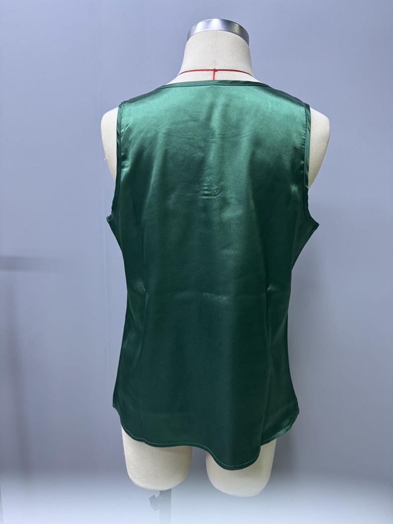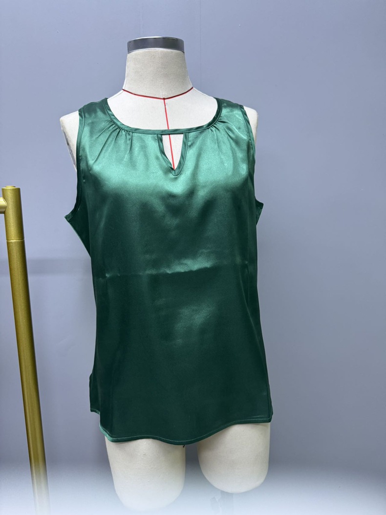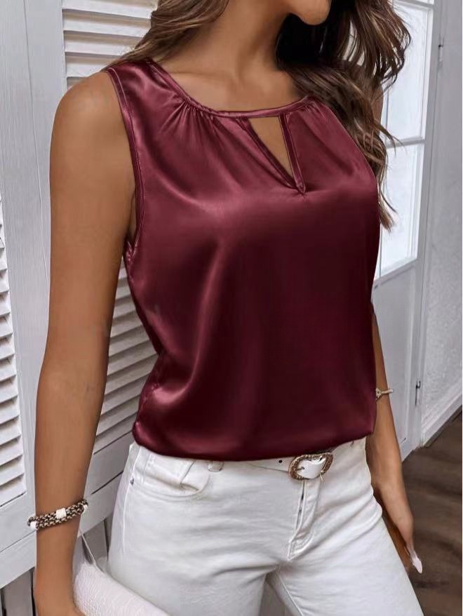 Women Clothing Summer Satin Pleated T shirt Satin Vest Hollow Out Cutout Sleeveless Top