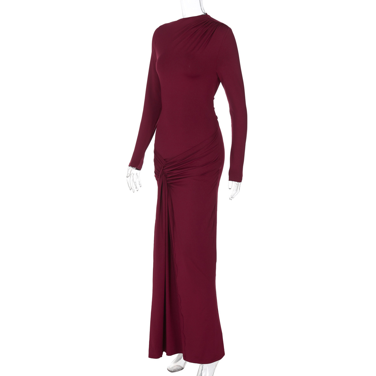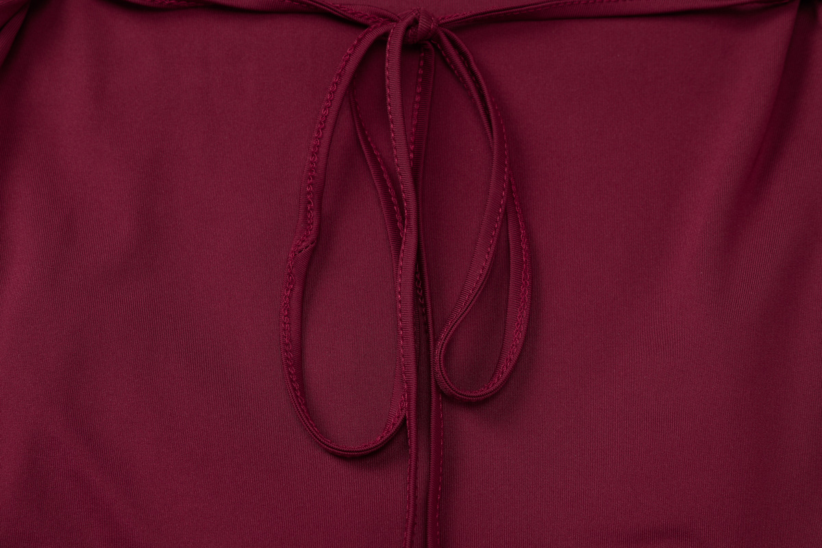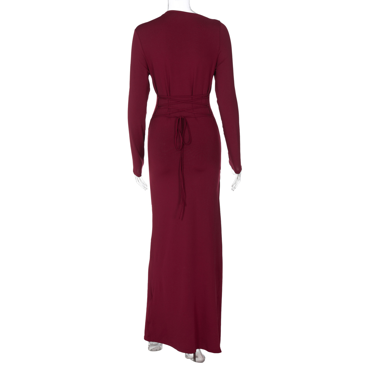 Women Clothing Summer Waist Controlled Lace up Sheath Dress Solid Color Slim Fit Long Sleeves Dress