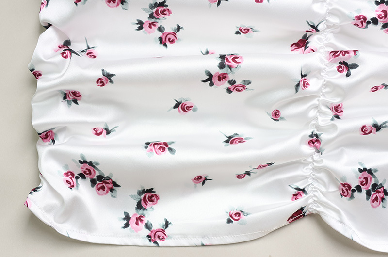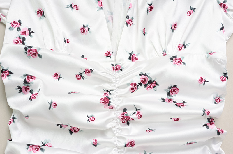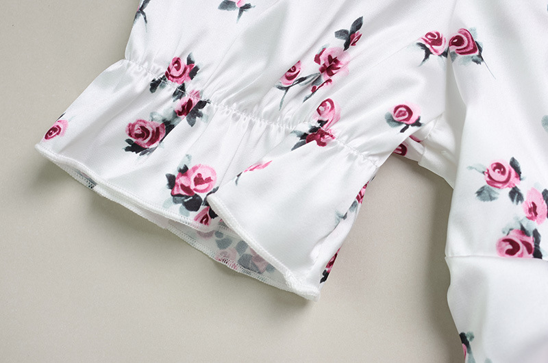 Women French V neck Sexy Slim Hip Floral Puff Sleeve Dress Short