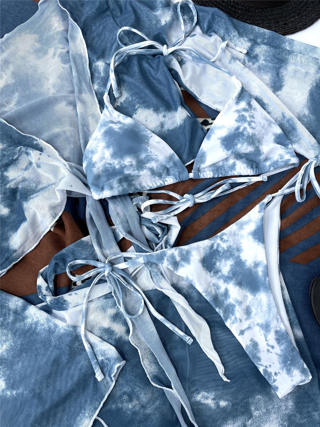 Maillot de bain séparé pour femme, bikini sexy quatre pièces tie-dye