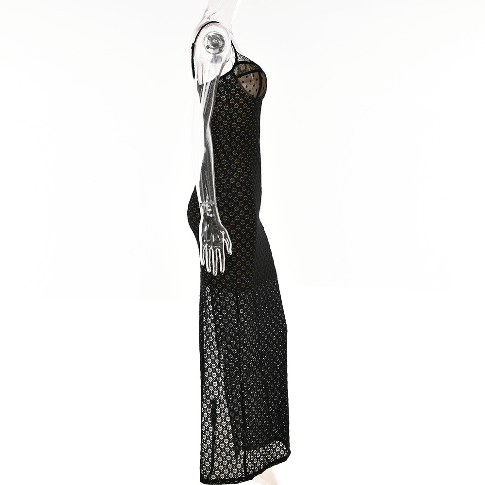 Robe moulante sexy à bretelles et dos nu en dentelle, robe fendue à pois, automne
