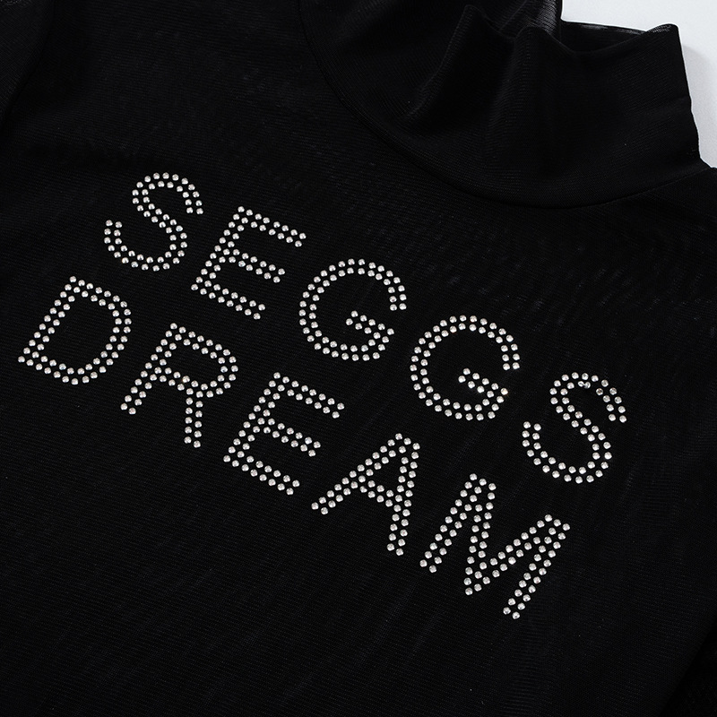 Pull-over à manches longues et col rond, couleur unie, style décontracté, avec strass, pour femme, collection automne