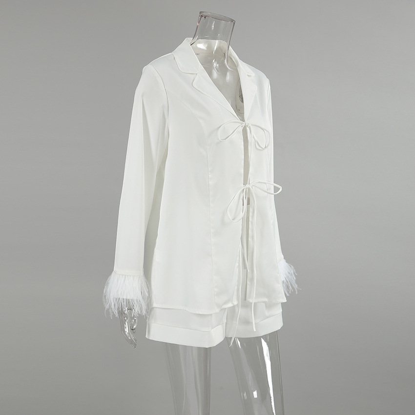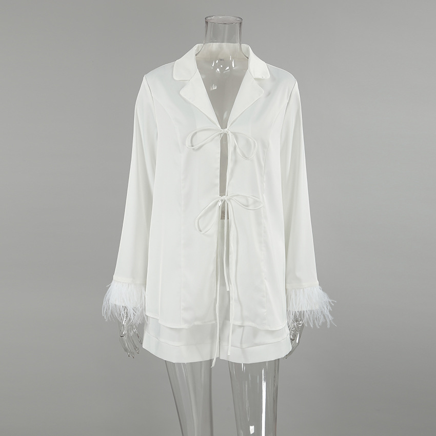 Cardigan blanc d'automne à lacets et manches longues pour femme, pyjama minimaliste, idéal comme vêtement d'extérieur ou d'intérieur