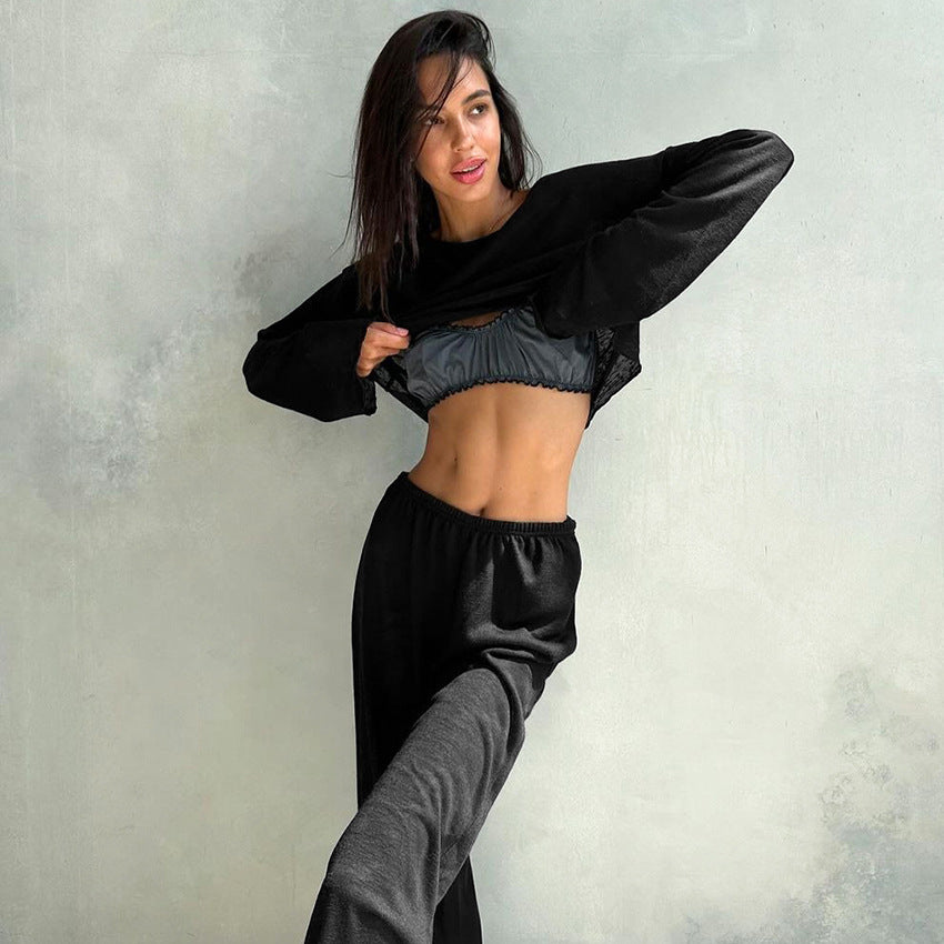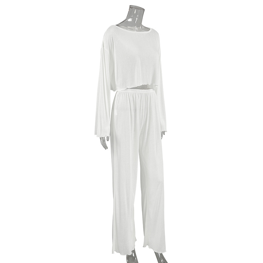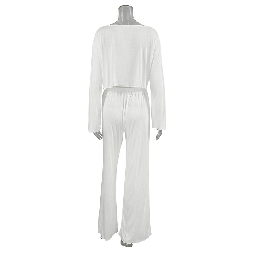 Pyjama deux pièces en tricot blanc pour femme, col rond, manches longues, ample et confortable, collection automne