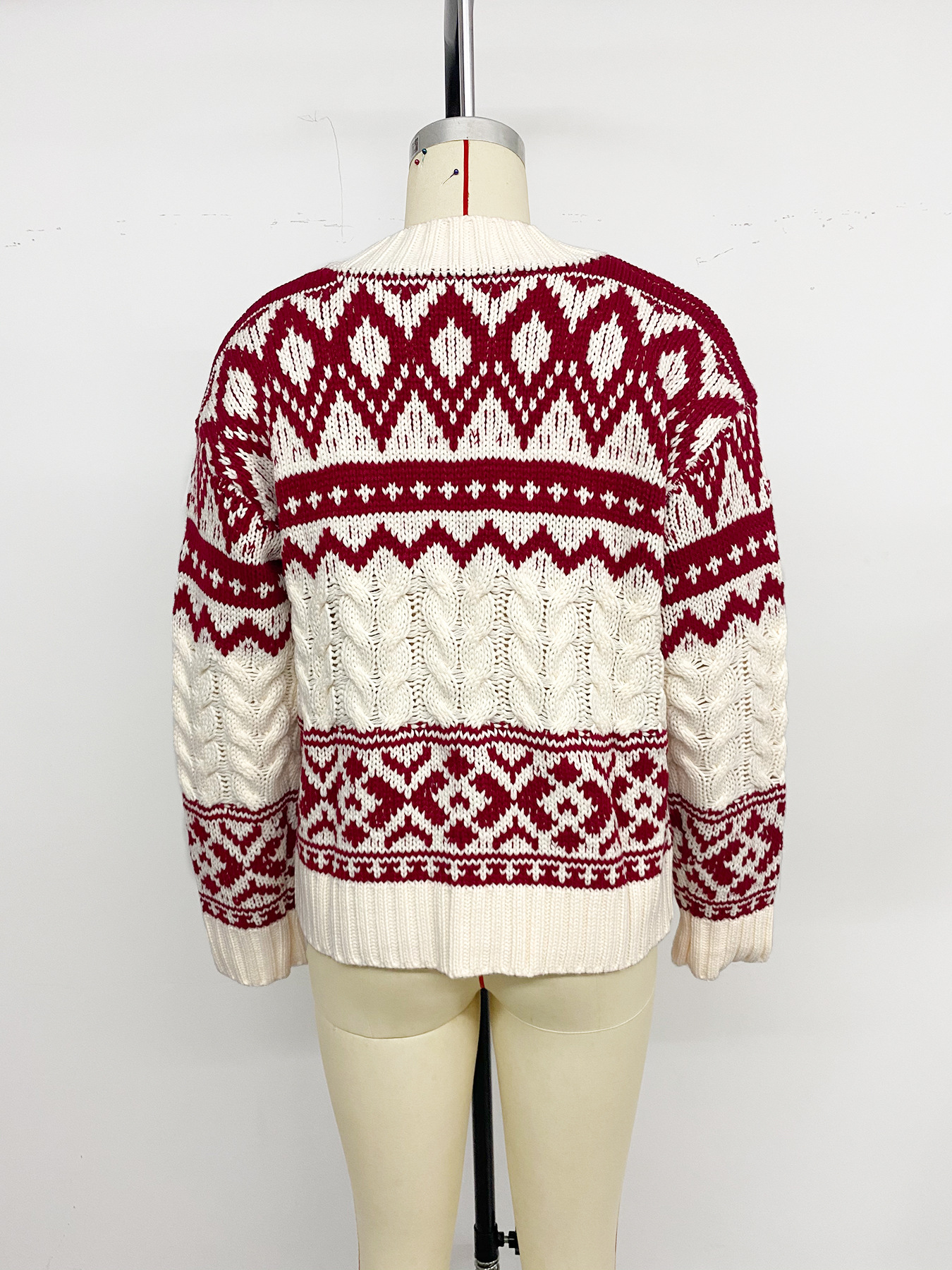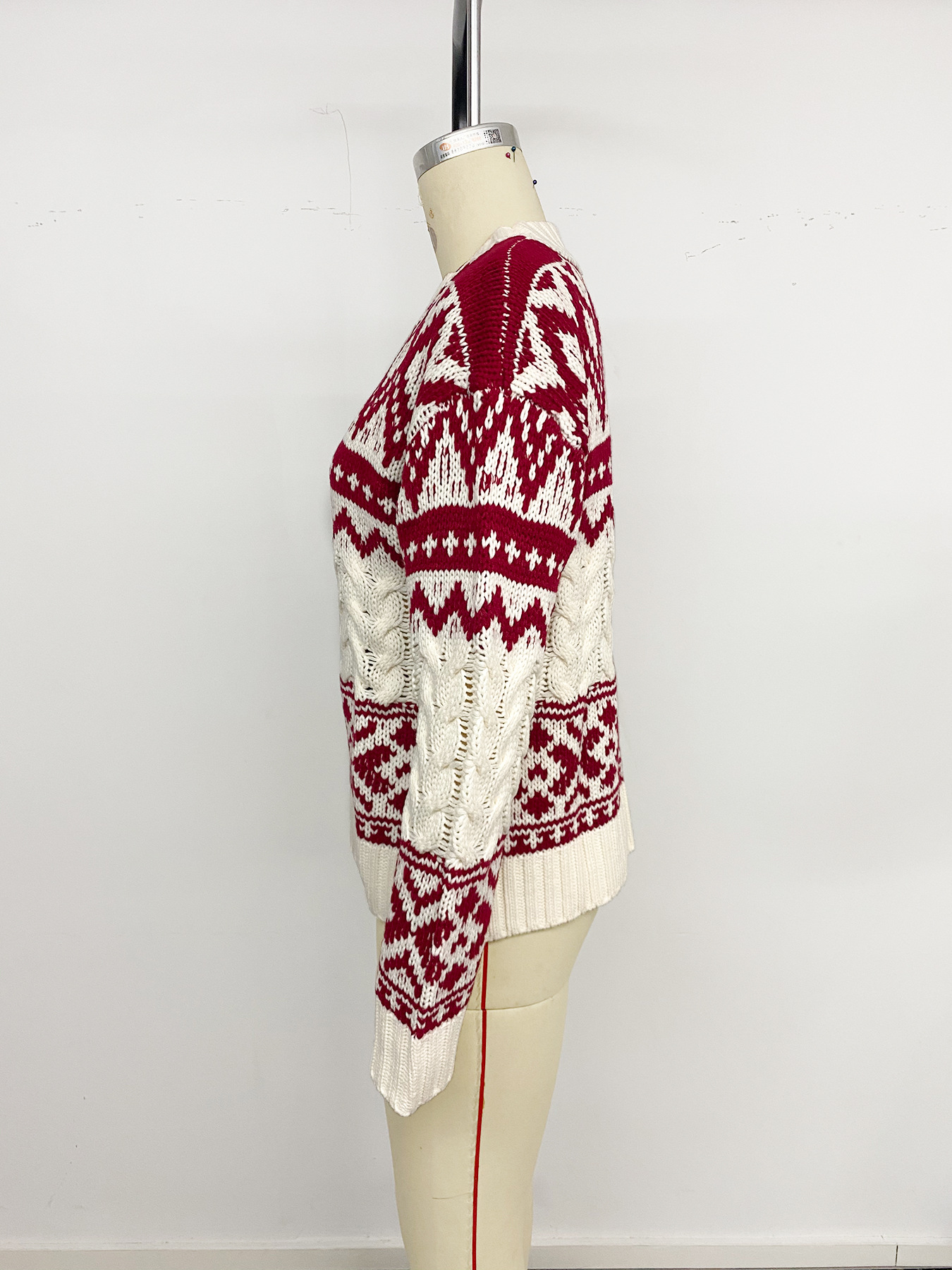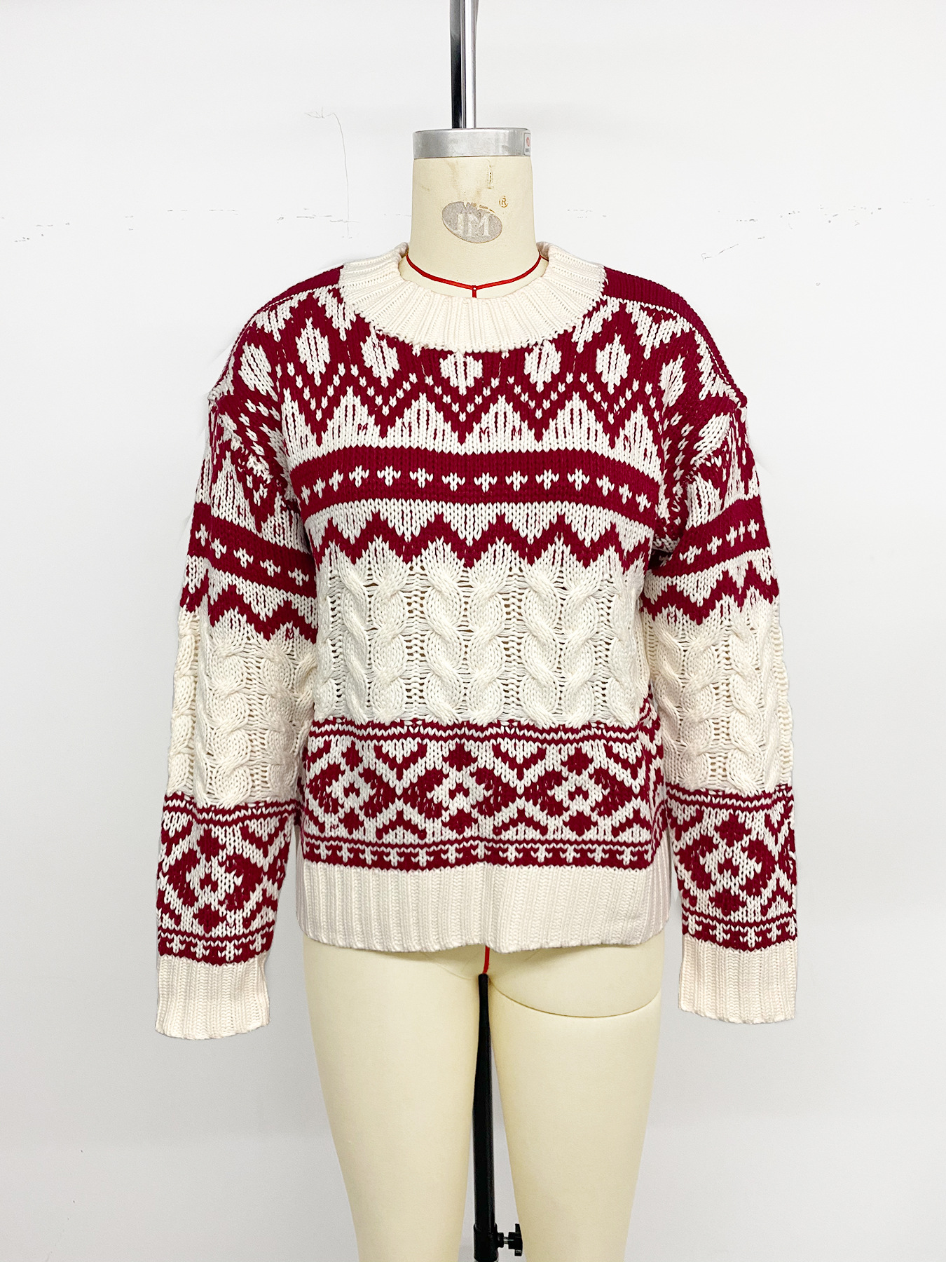 Autumn Winter Christmas Ethnic Retro Women Clothing Thermal round Neck Sweater Women