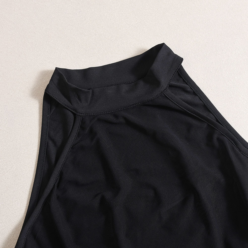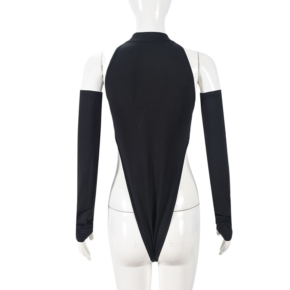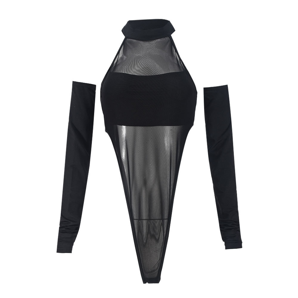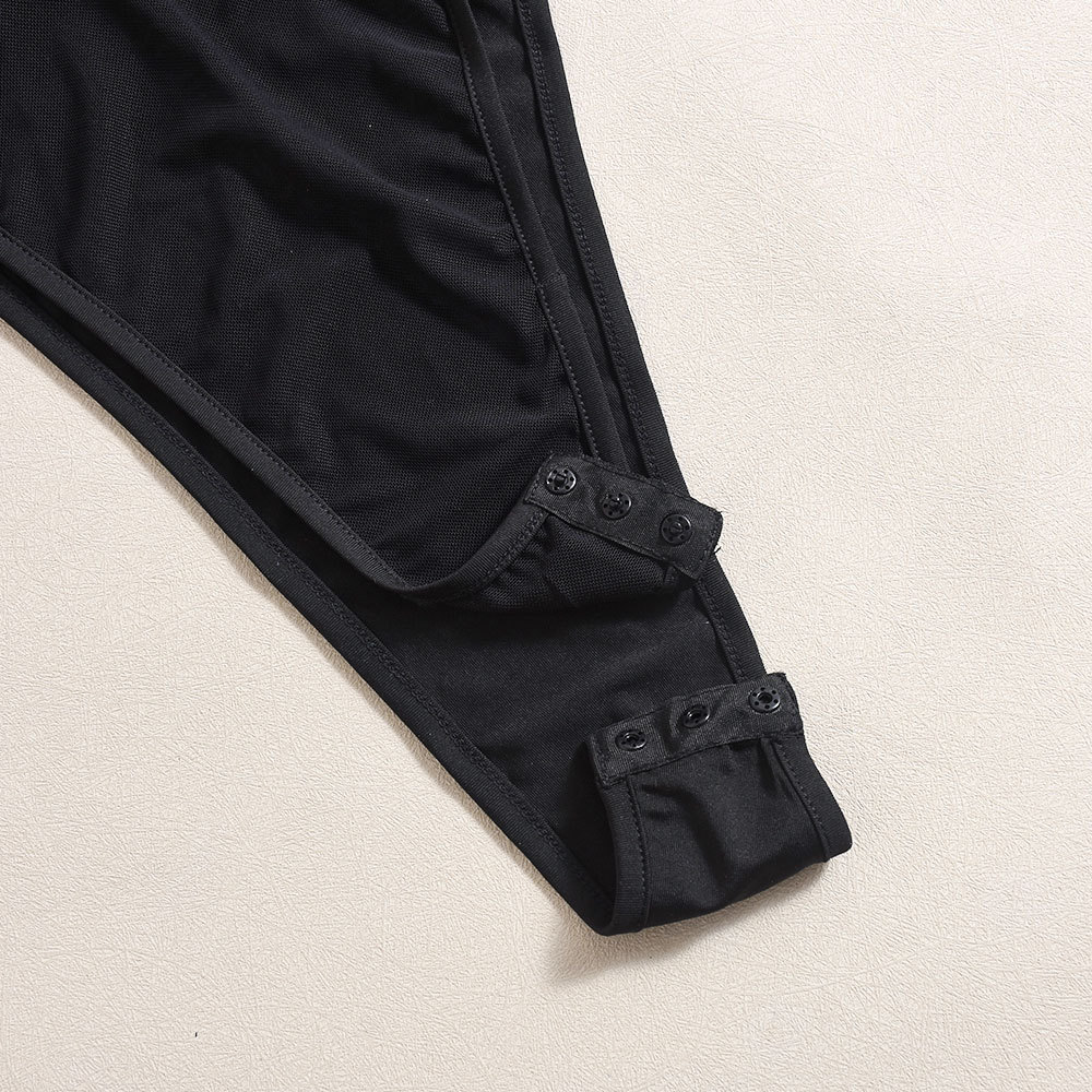 Haut une pièce sexy fendu à manches longues et entrejambe en maille ajourée et découpée, très élastique, pour femme, automne et hiver