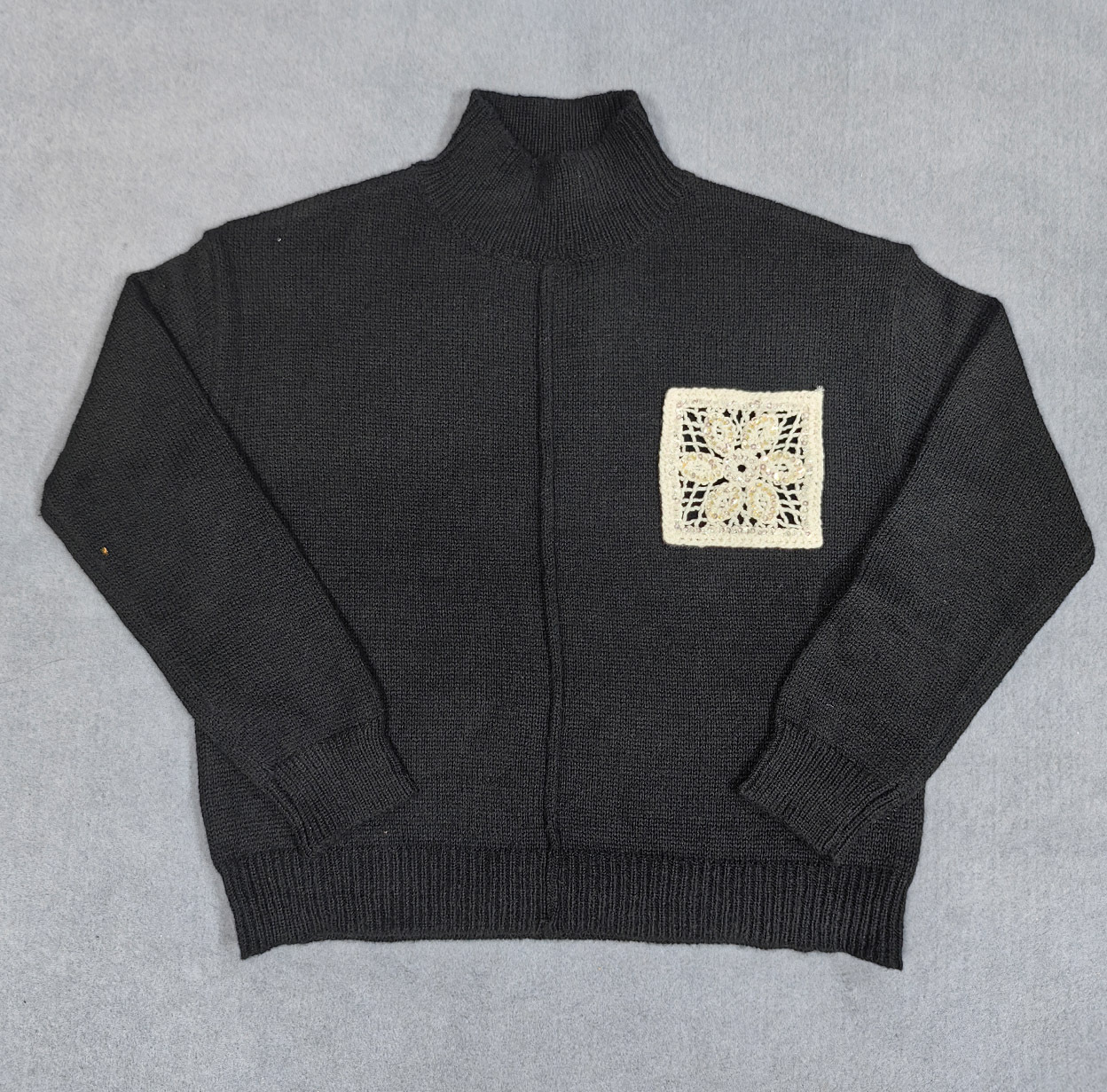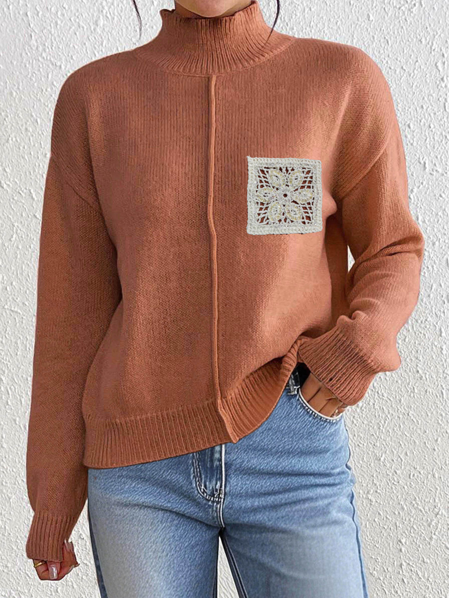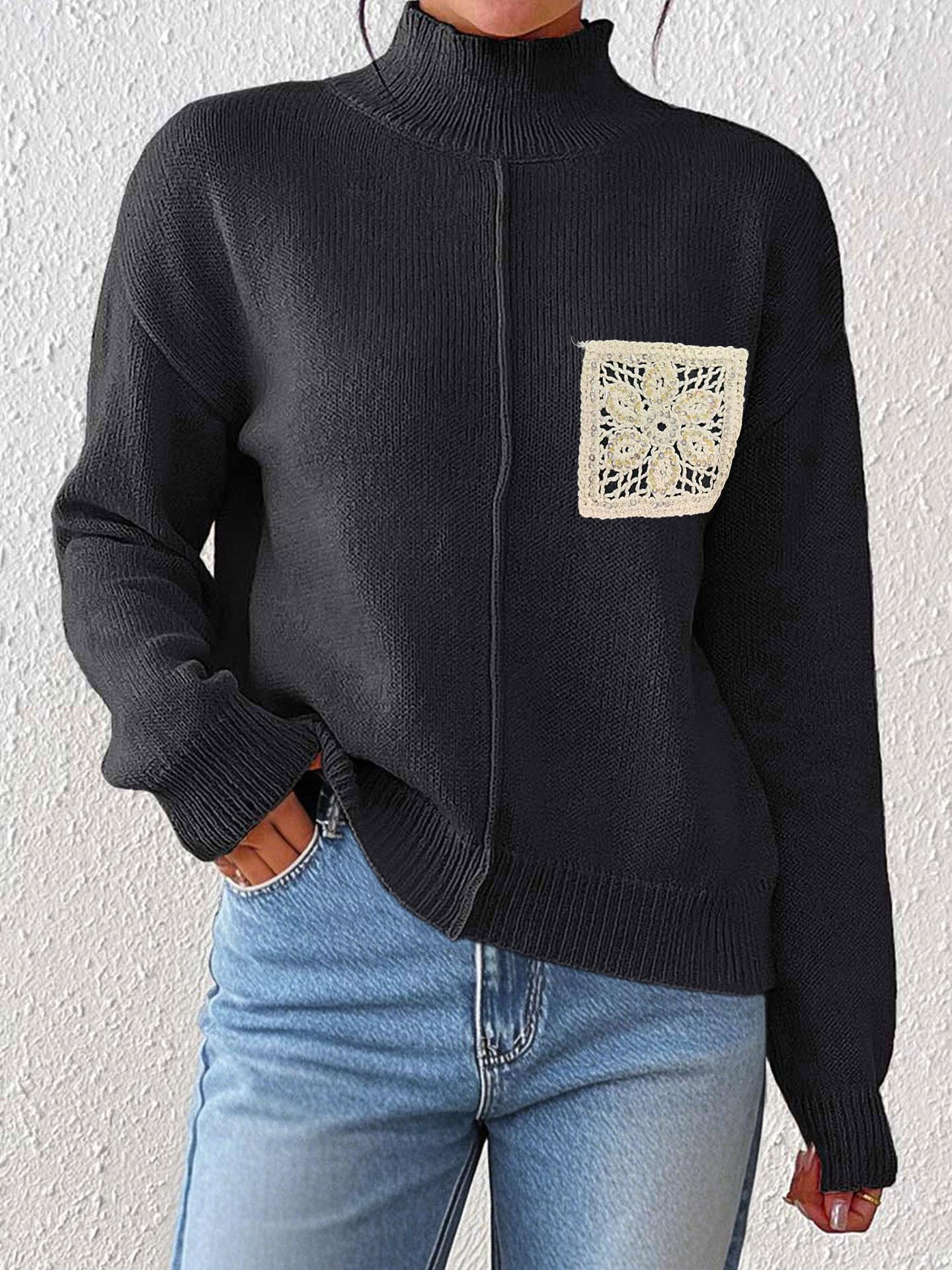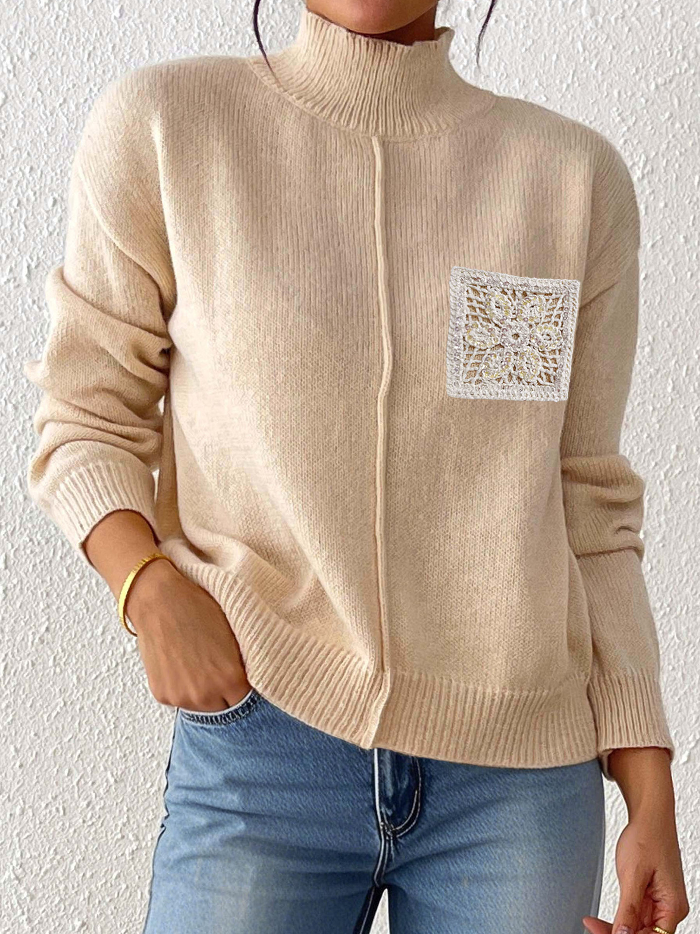 Autumn Winter Women Clothing Solid Color Half Collar Pullover Sweater Sequined Hollow Out Cutout Pocket Stitching Sweater for Women