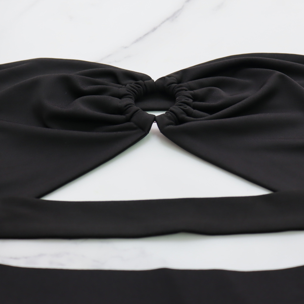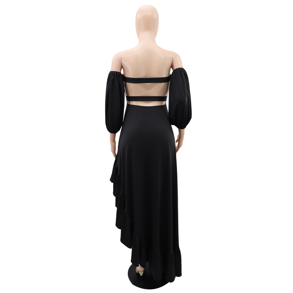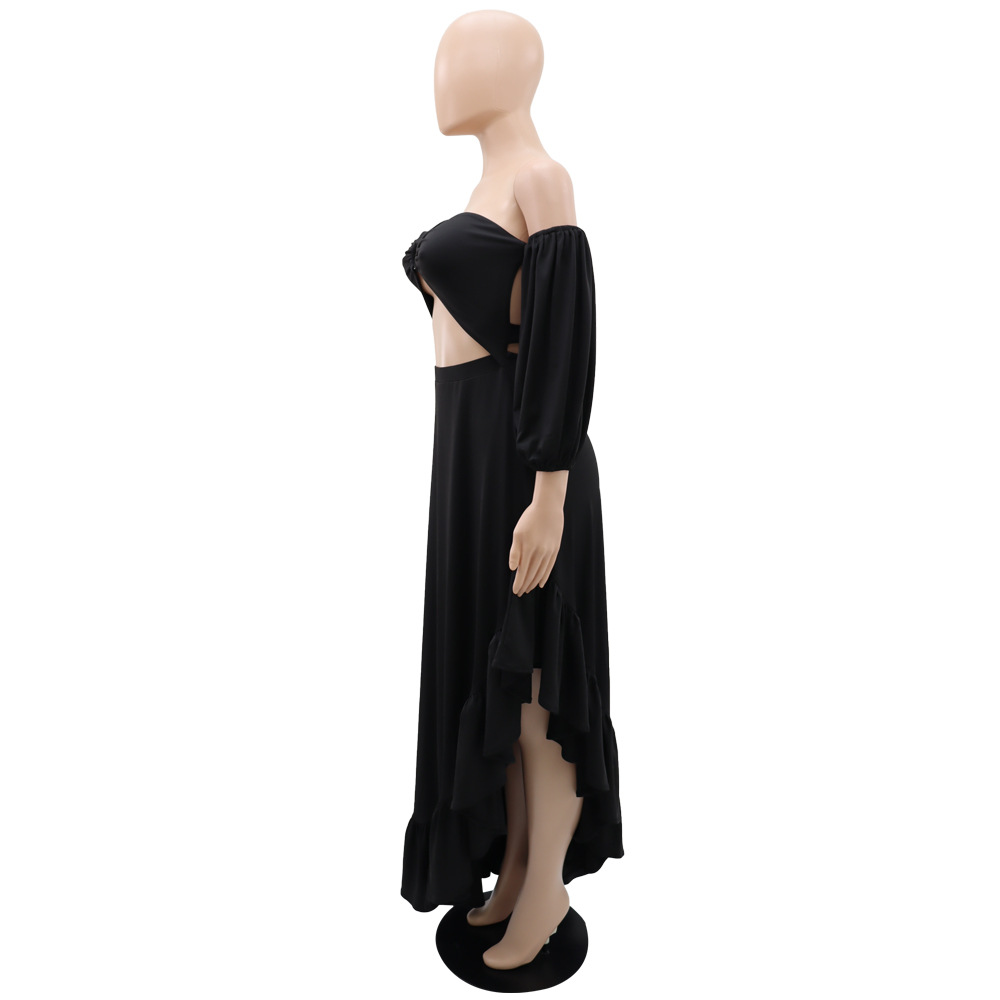 Robe bandeau sexy courte et asymétrique à volants et fente pour femme