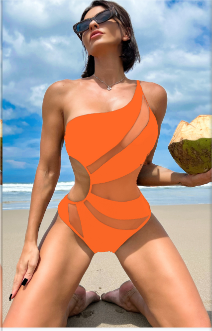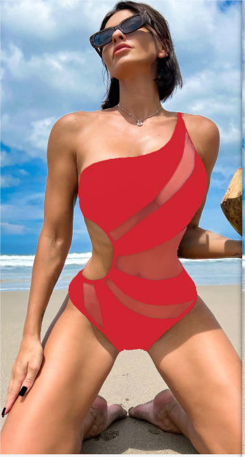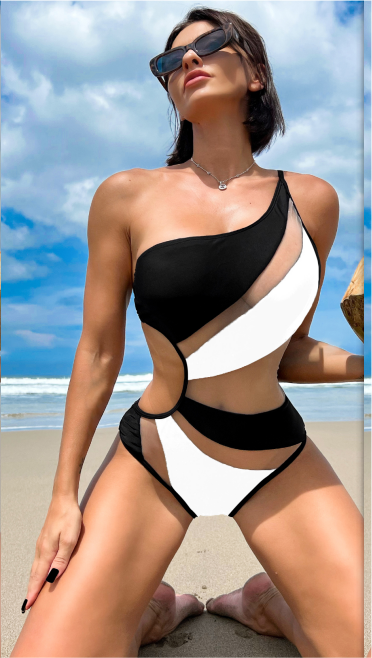 Maillot de bain une pièce asymétrique en maille contrastée Bikinx