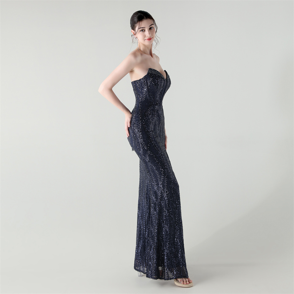 Boning Corset Waist Tight Heavy Industry Beads Heart Shaped Collar Sequined Evening Dress Luxury Cocktail Evening Dress