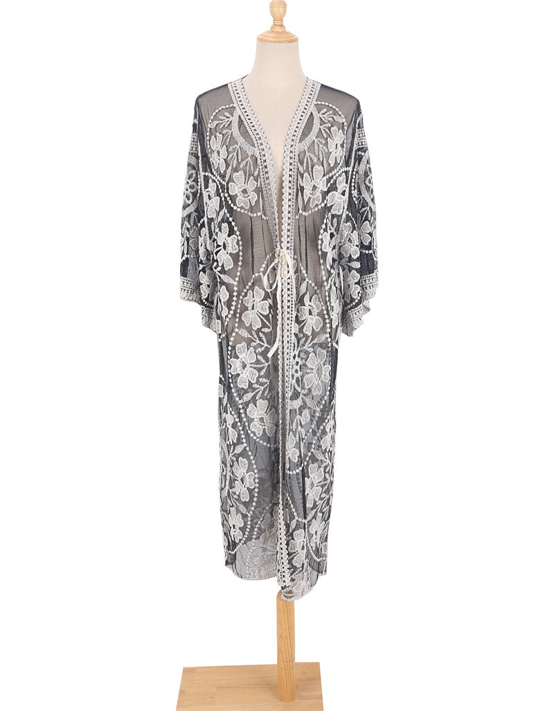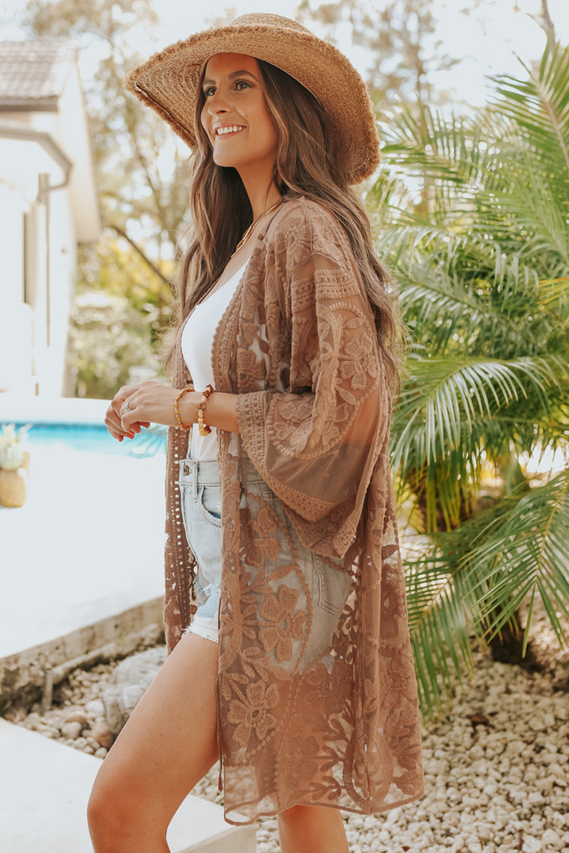 Cardigan de plage brodé en dentelle, sexy, chemise de protection solaire pour les vacances, maillot de bain, chemisier