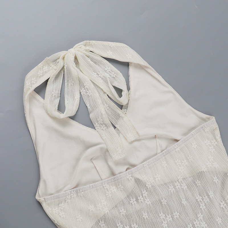 Robe sexy dos nu en dentelle pour femme, tenue de vacances courte
