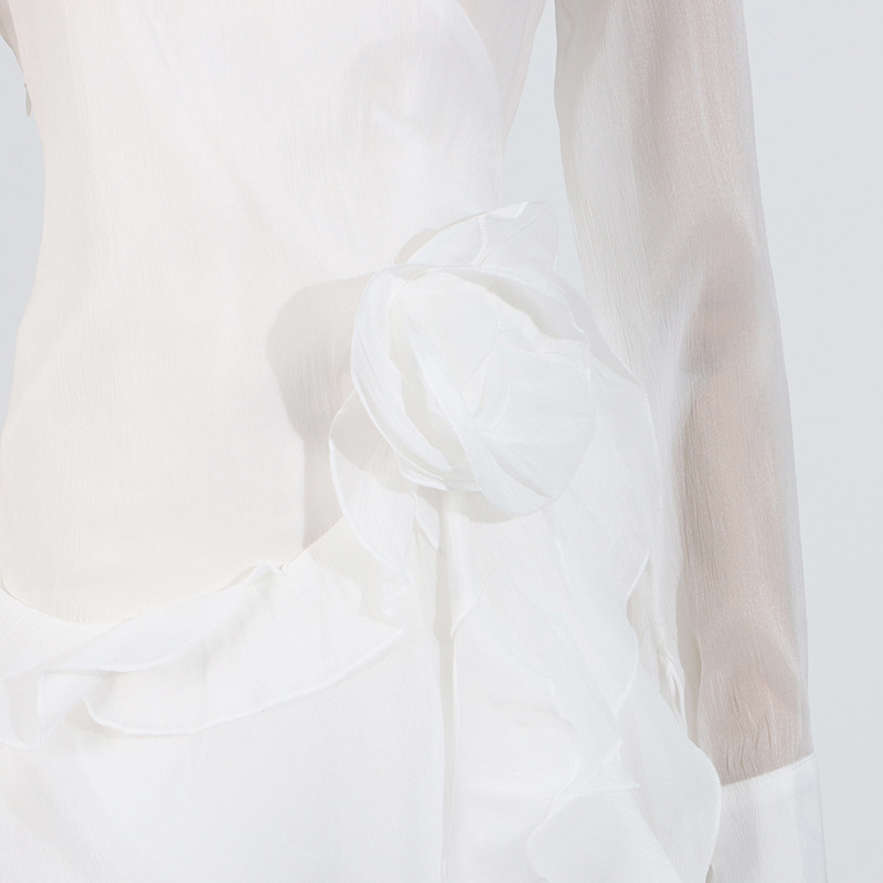 Élément : fermeture éclair, dentelle/tulle/résille, asymétrique, décoration 3D, volant