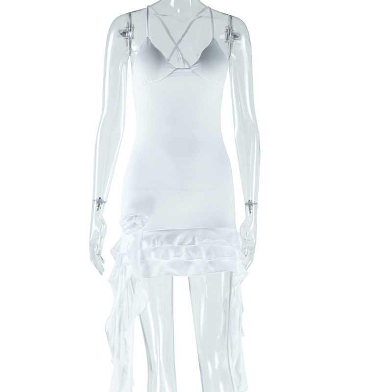 Robe sexy sans manches à bretelles et dos nu, motif floral tridimensionnel, couleur unie